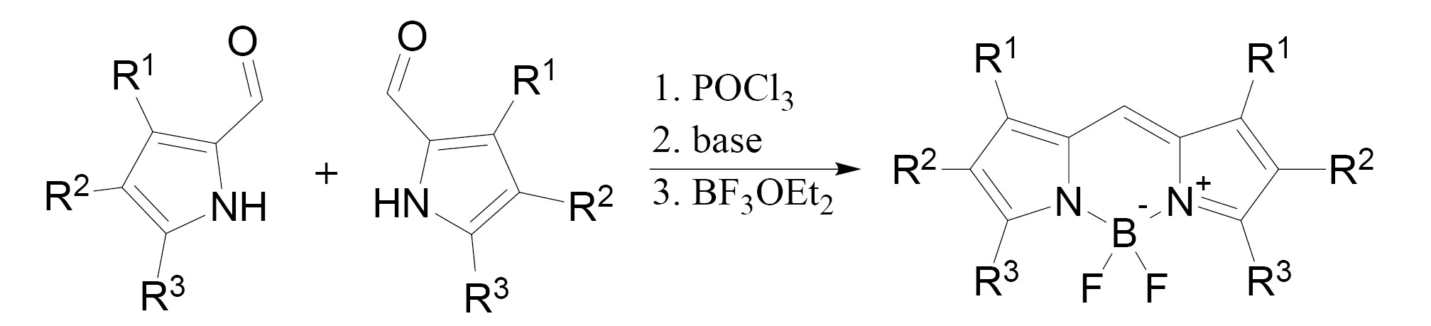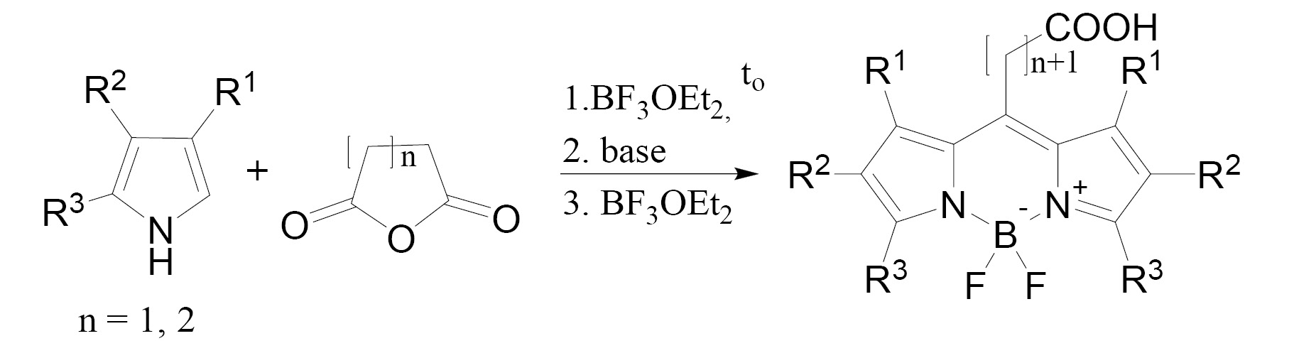 Используется метод синтеза из пирролов и ангидридов дикислот, например, при получении BODIPY для разработки флуоресцентных сенсоров протонов [88], а также спин-меченых аналогов холестерола [21] и олигонуклеотидов [89].