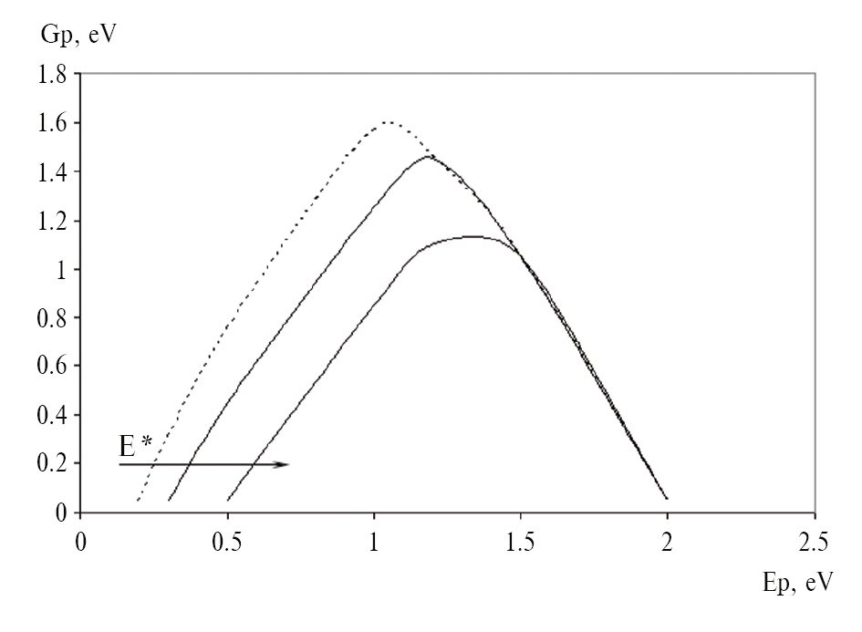 Наконец, мы рассчитываем распределение энергий пассивации связей Gp(Ep) путем интегрирования энергий диссоциации из двумерного распределения g(Ed, Ep) с использованием (4) (рис. 2). Тогда в начале первого восстановления, Gp (Ep) является гауссовым, как в классической модели [15].