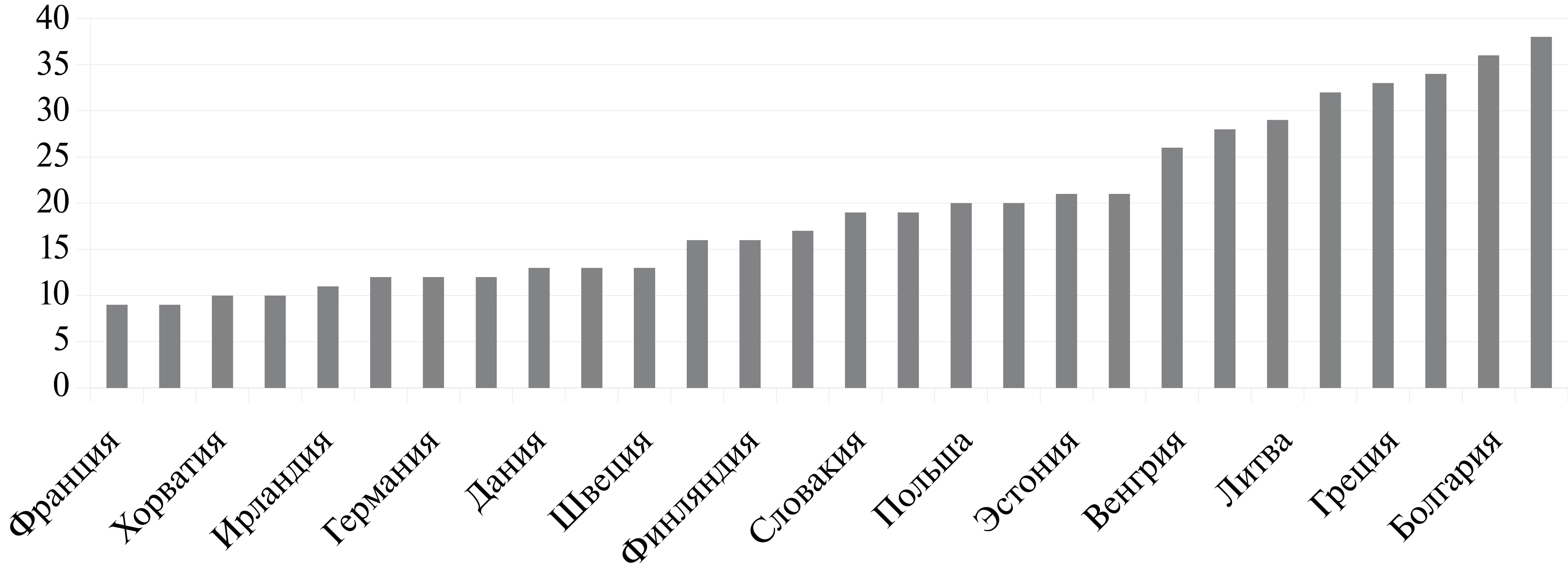 Страны Евросоюза в 2020 г. потратили в среднем 8,3% от своих ВВП на здравоохранение: 6,1% от ВВП составили государственные расходы, 2,2% ВВП – частные (добровольное страхование и личные средства домохозяйств) 19. Однако показатели разнятся от страны к стране. Три государства потратили на эти цели около 10% от своего ВВП: Германия – 9,9%, Франция – 9,7%, Швеция – 9,3%. Во многих странах Центральной и Восточной Европы государственные расходы составляют менее 5% ВВП.