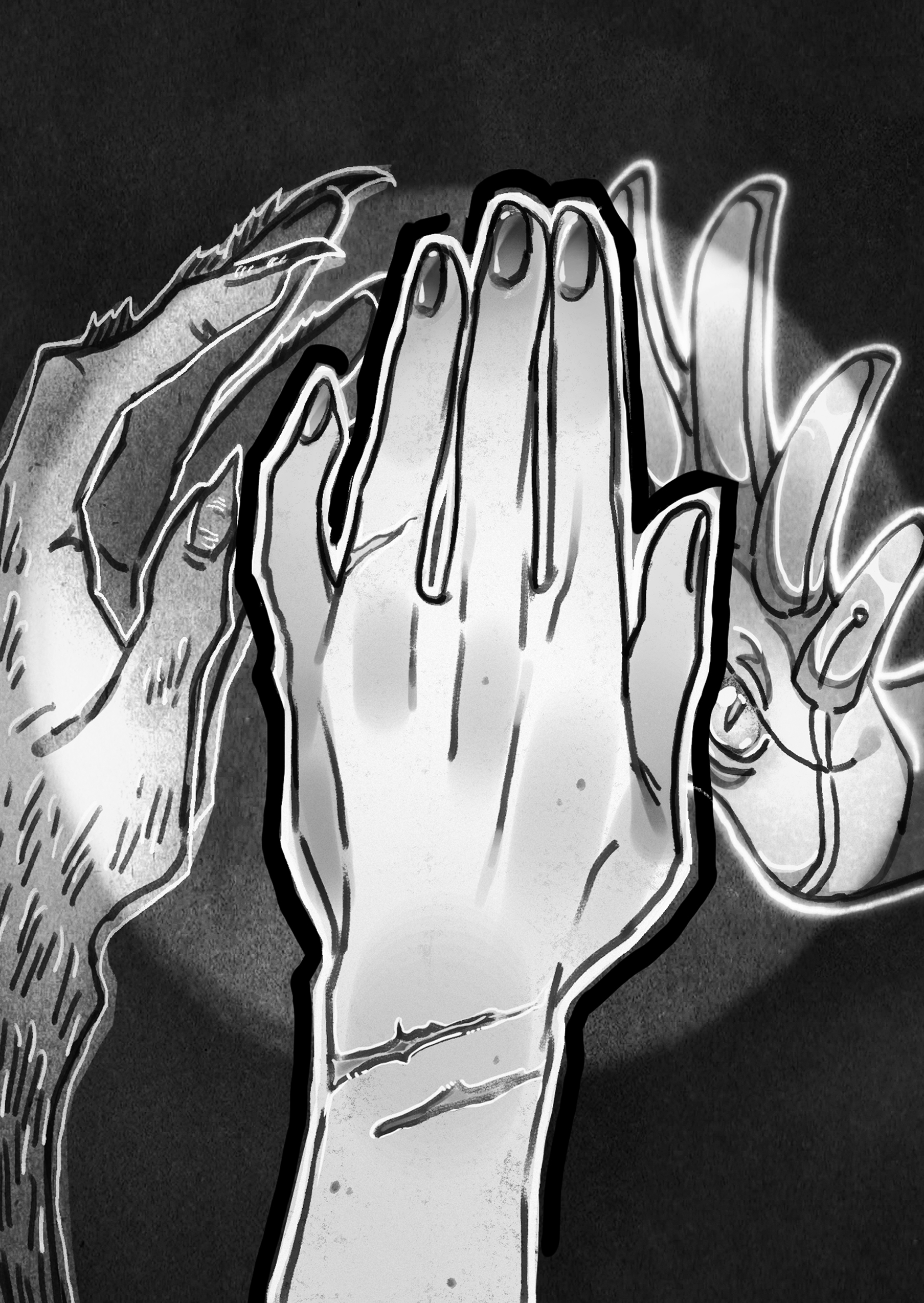 Добытая после долгих мытарств и чудовищных жертв колбочка с газом из-за неосторожности разбивается, не нанеся урона мессии, что преследует главных героев с отрядом монстрокрыс. И тогда Саки просит Киромару о помощи. Эта помощь заключается ни много ни мало в самопожертвовании: Киромару небрежно наматывает на голову повязку и, пользуясь своей вполне человеческой статью, вводит в заблуждение мессию: они оба устремляются навстречу друг другу, словно их притягивает нечто, находящееся между ними посередине. Принявший Киромару за (сверх)человека божественный ребенок использует телекинез и убивает противника. После этого спадающая с головы Киромару повязка открывает мессии страшную для него правду: он только что убил (мнимого) сородича, монстрокрысу, вследствие чего срабатывает смертельный отклик и настает черед погибнуть уже и самому божественному ребенку. Сущности, роли, самовосприятие и мотивы поступков как будто кружатся в вихре вокруг того самого нечто, находившегося посередине между Киромару и ребенком Марии в момент, предшествовавший их гибели. Пришло время дать имя этому нечто, и этим именем будет человек как сингулярность.