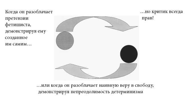 Теперь вы понимаете, почему так приятно быть критиком? Почему критика, этот в высшей степени двусмысленный pharmakon, превратился в сильнейший наркотик, вызывающий такую эйфорию? Вы всегда правы! Когда наивные верующие из последних сил цепляются за свои объекты, утверждая, что их действиями движут объекты желания, божества, или поэзия и т. п., то можно превратить все эти привязанности в фетиши и унизить «верующих», показав, что все это не более чем их проекции, которые способны видеть только вы, выступая в качестве критика. Как только наивные «верующие» почувствуют собственную значимость, поверят в свою проецирующую способность, вы наносите им новый удар и унижаете их снова, на этот раз показав, что их поведение, что бы они там о себе ни возомнили, полностью обусловлено действием мощных причинно-следственных связей, берущих начало в не видимой ими объективной реальности, которую можете видеть только вы, недремлющий критик. Ну, разве это не здорово? Разве изучение критики в университете не оправдывает себя? «Входите же, несчастные! После стольких лет, когда вы на износ читали все эту написанную высокопарным слогом прозу, вы всегда будете правы, вас больше нельзя обмануть: никто, какой бы властью он ни обладал, больше не сможет обвинить вас в наивности, самом тяжком из всех грехов. Вы правите самолично и оснащены для этого лучше самого Зевса: одной рукой вы посылаете сверху на врагов молнии антифетишизма, а другой — молнии твердой причинности объективного». В дураках оказывается только наивный верующий, это вечное отребье, что всякий раз застают врасплох (рис. 3).