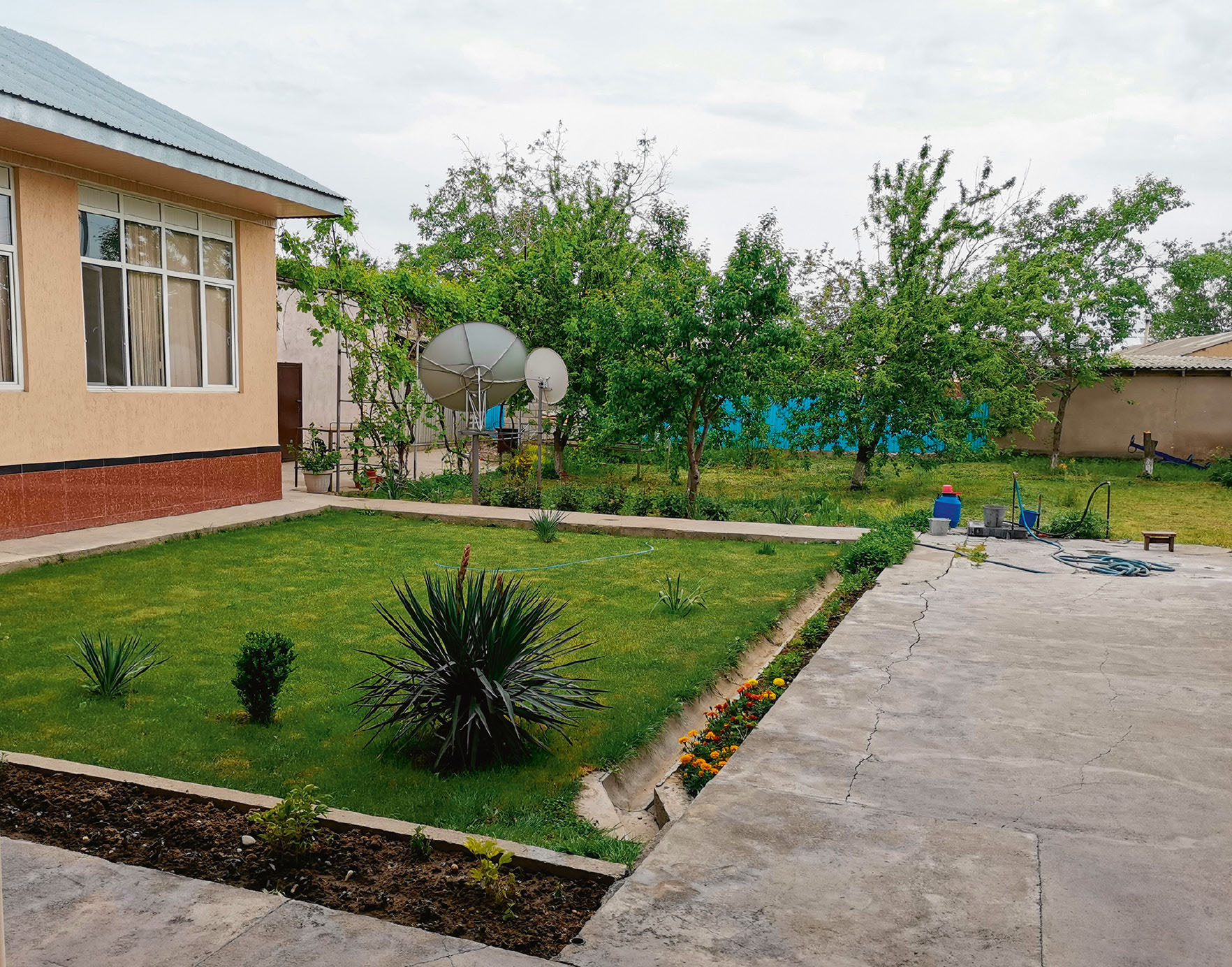 Во-вторых, в сельской местности Казахстана в относительно закрытых этнических сообществах у женщин с ОВЗ горизонт возможностей на брачном рынке значительно уже, чем у условно здоровых женщин из сельской махалли или у горожанок с ОВЗ. Родители, понимая это, гораздо более активно вмешиваются в личную жизнь дочерей, пытаясь устроить их судьбу. Сложившуюся тенденцию хорошо видно на примере Лейлы (16 лет, 2-я группа инвалидности, детская травма бедра), которая живет с братьями и сестрами в довольно комфортных условиях, созданных ее родителями внутри двора (см. Рис. 2), который в узбекской махалле традиционно отделен от внешнего мира сплошными стенами (см. Рис. 3).