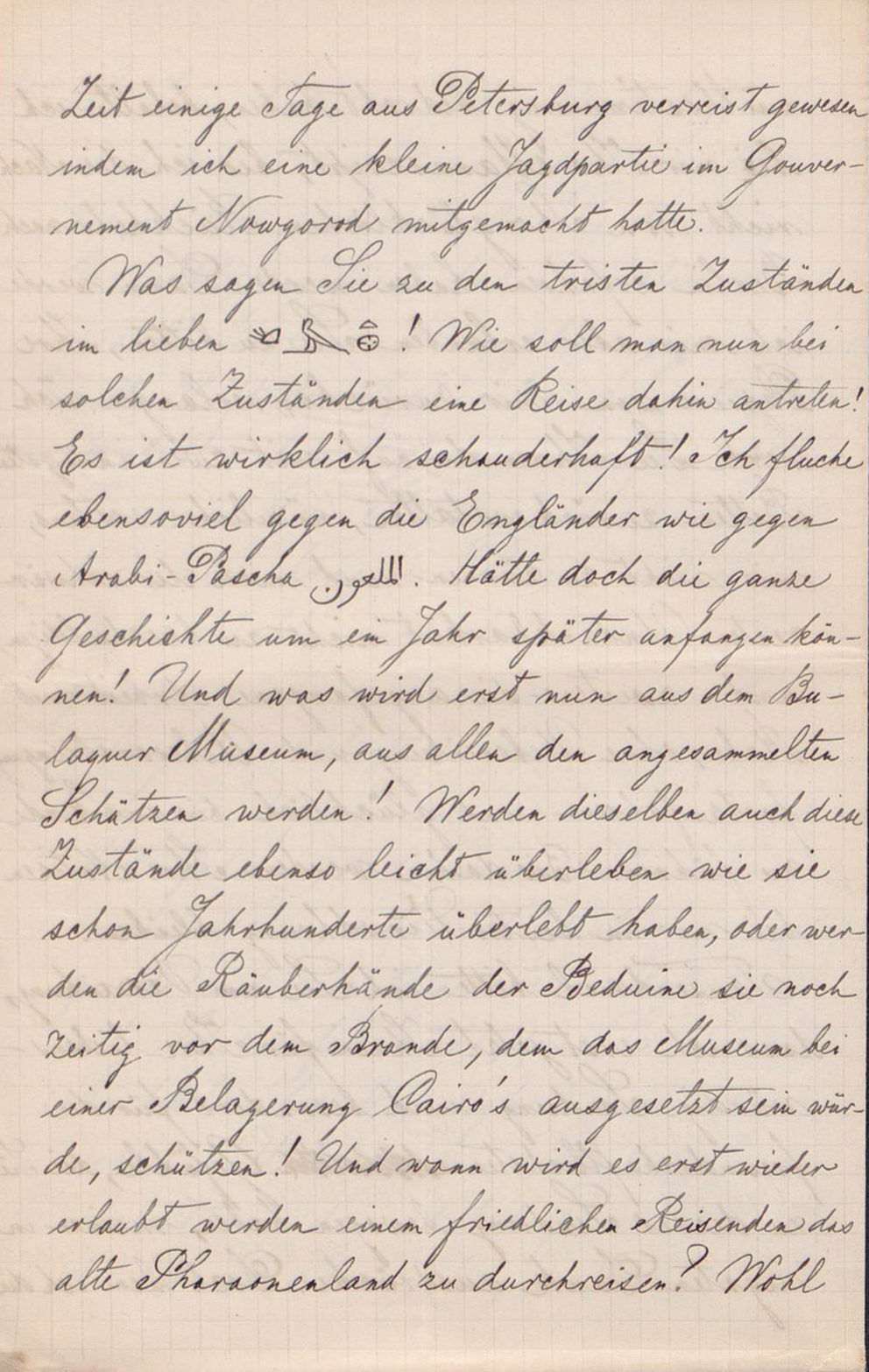 This article analyzes documents of the founder of Russian scientific Egyptology V.S. Golenishchev (1856–1947), stored in domestic and foreign archives. The article draws attention to the correspondence of Golenishchev with his colleagues, meaning their reflection of contemporary political events (from the speech of Orabi Pasha in Egypt in the early 1880s to the events on the eve of World War II). The material examined makes it possible to conclude that the personal position of the scientist was predominantly apolitical; he was primarily engaged in collecting and researching ancient Egyptian texts and clearly saw the feasible preservation of the sociopolitical situation to which he was accustomed as a guarantee of the stability necessary for scientific work.