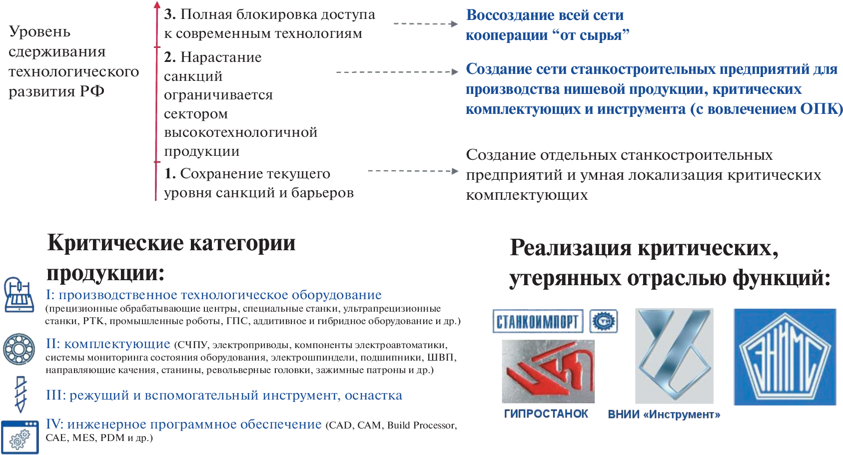 The article is devoted to current issues in the development of the machine tool industry in Russia. The results of a study of the critical needs of mechanical engineering conducted by MSUT STANKIN are presented. Current challenges associated with attempts to restrain the technological development of Russia are identified. Mechanisms for solving industry problems that ensure the ability of machine-building enterprises to produce high-tech products in the absence of access to foreign technologies and equipment are considered. The author proposes a concept for centralizing the functions of planning and coordinating industry development, including machine tool building and the production of critical components, on the basis of a single center. The article was prepared on the basis of a report heard at a meeting of the Presidium of the Russian Academy of Sciences on April 26, 2022.