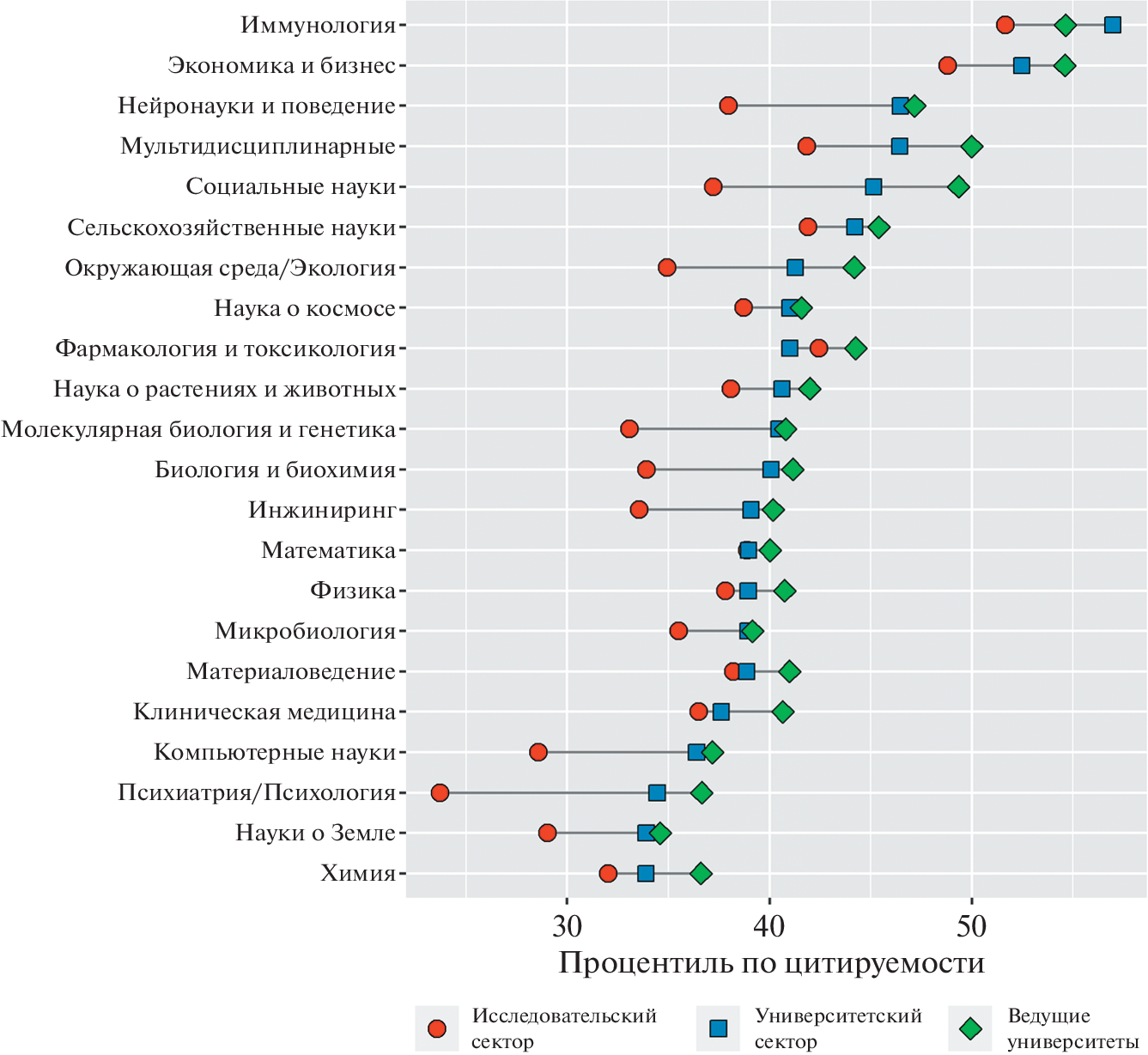 Modern Russia inherited the Soviet scientific system, in which the university sector was rather weakly involved in research activities. However, by now the situation has changed significantly. The Russian government has actively stimulated the development of science in universities. It is shown in this article that the contribution of the university sector to the production of scientific knowledge has grown significantly and is already comparable with the contribution of the research sector in a number of indicators. The results of scientific research in both sectors—university and research—are published in journals of a comparable level, and the levels of citation of these publications are also comparable. Note that in economics, psychology and psychiatry, and social sciences, the university sector dominates. In addition, researchers from universities are more involved in international scientific collaboration. However, the sector itself is heterogeneous. Its main scientific achievements are related to the results obtained in leading research universities.