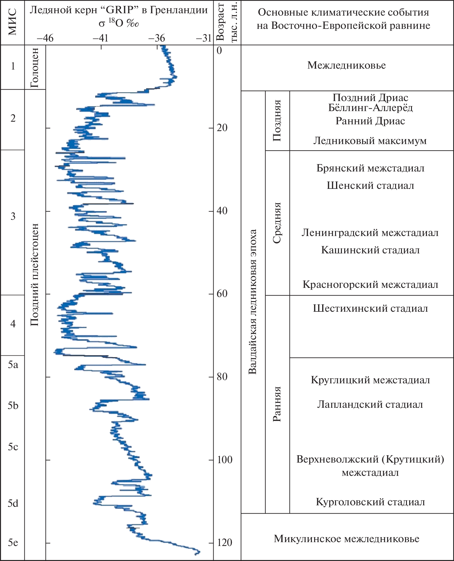 - Rinterknecht V., Hang T., Gorlach A. et al. The Last Glacial Maximum extent of the Scandinavian Ice Sheet in the Valday Heights, western Russia: Evidence from cosmogenic surface exposure dating using 10Be // Quaternary Science Reviews. 2018. V. 200. P. 106–113.