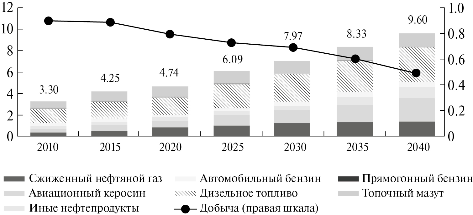Доля в мировом импорте нефти, % | 6.5 | 10.3 |