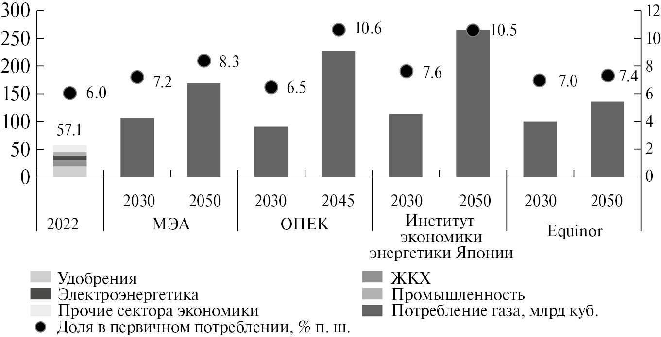 Доля в мировом потреблении газа, % | 2.0 | 1.5 |