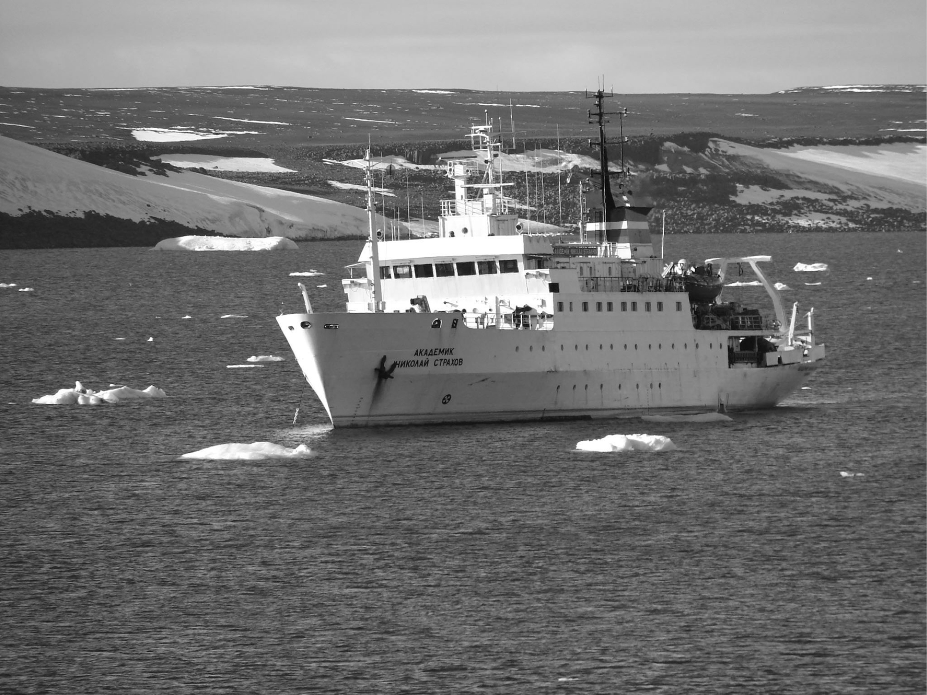 Антарктическая акватория. В 1994 и 2006 гг. НИС “Академик Николай Страхов” совершило 18-й и 23-й совместные российско-итальянские рейсы в Антарктической акватории. Это были самые сложные экспедиции как по погодным условиям, так и по продолжительности.