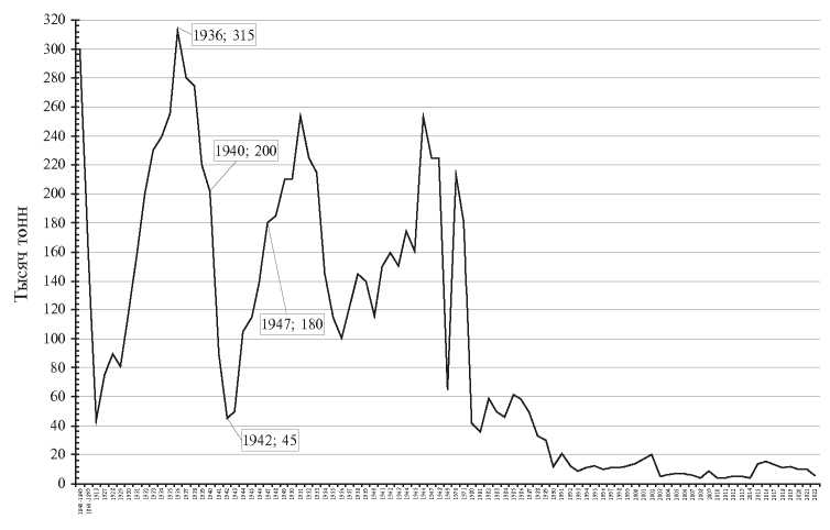 Рис. 5. Отечественный вылов сельди в Каспийском бассейне