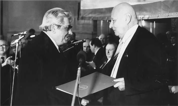 Н.С. Ениколопов со своим наставником – академиком Н.Н. Семёновым, 1982 г.