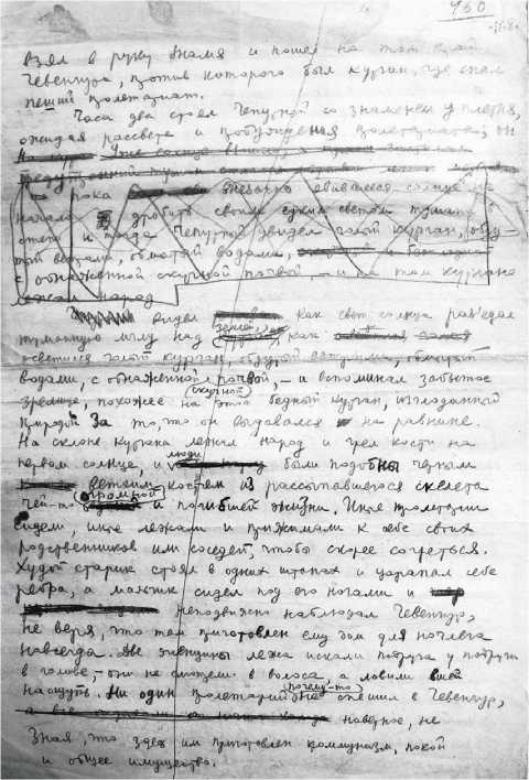 Рукопись открыла для нас и главную присокровенную тему романа, мимо которой до того проходили как зарубежные, так и отечественные интерпретаторы. Две записи Платонова на страницах с сокращённой в автографе подробной историей строительства города Чевенгура: