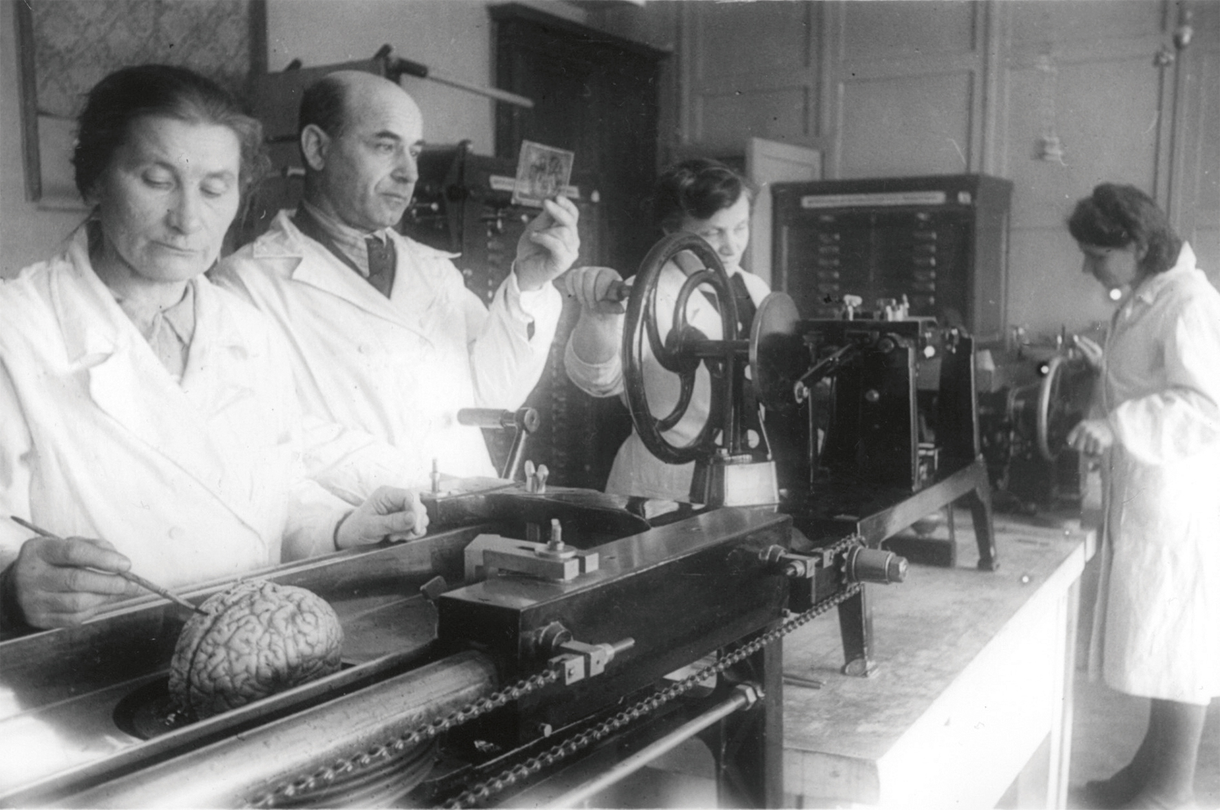 В 1918 г. на базе созданного в 1907 г. уникального для России и мира Психоневрологического института В.М. Бехтерев инициировал открытие Института по изучению мозга и психической деятельности (с 1924 г. – Государственный рефлексологический институт по изучению мозга, с 1929 г., после смерти Бехтерева, стал носить его имя; с 1938 г. – Государственный институт по изучению мозга им. В.М. Бехтерева). В 1921 г. Бехтерев пригласил на должность заведующего отделом (сектором) морфологии одного из сотрудников Института анатомии мозга Цюрихского университета, ученика К. фон Монакова, Л.Я. Пинеса (настоящее имя Юда-Лейб Пинес).