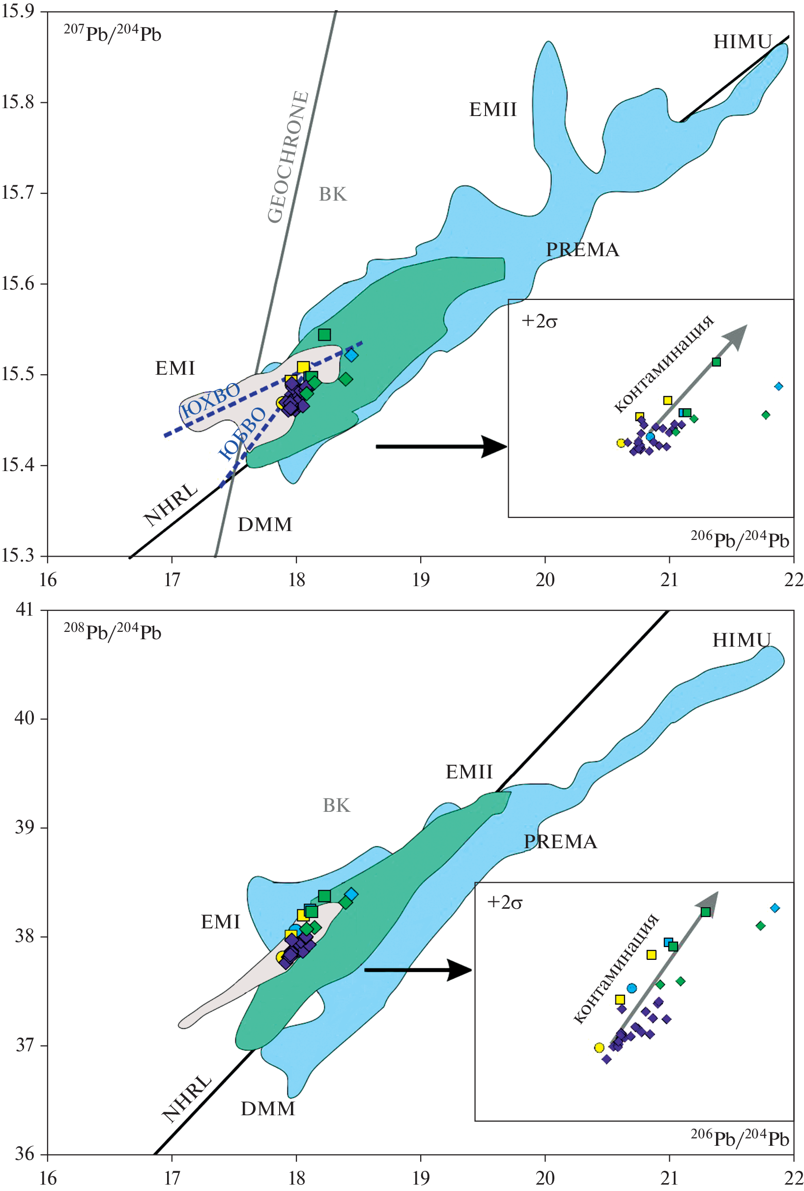 - Zhang Y., Yuan C., Sun M. et al. Recycled oceanic crust in the form of pyroxenite contributing to the Cenozoic continental basalts in Central Asia: New perspectives from oli-vine chemistry and whole-rock B–Mo isotopes // Contrib. Mineral. Petrol. 2019. V. 174. P. 1–22.