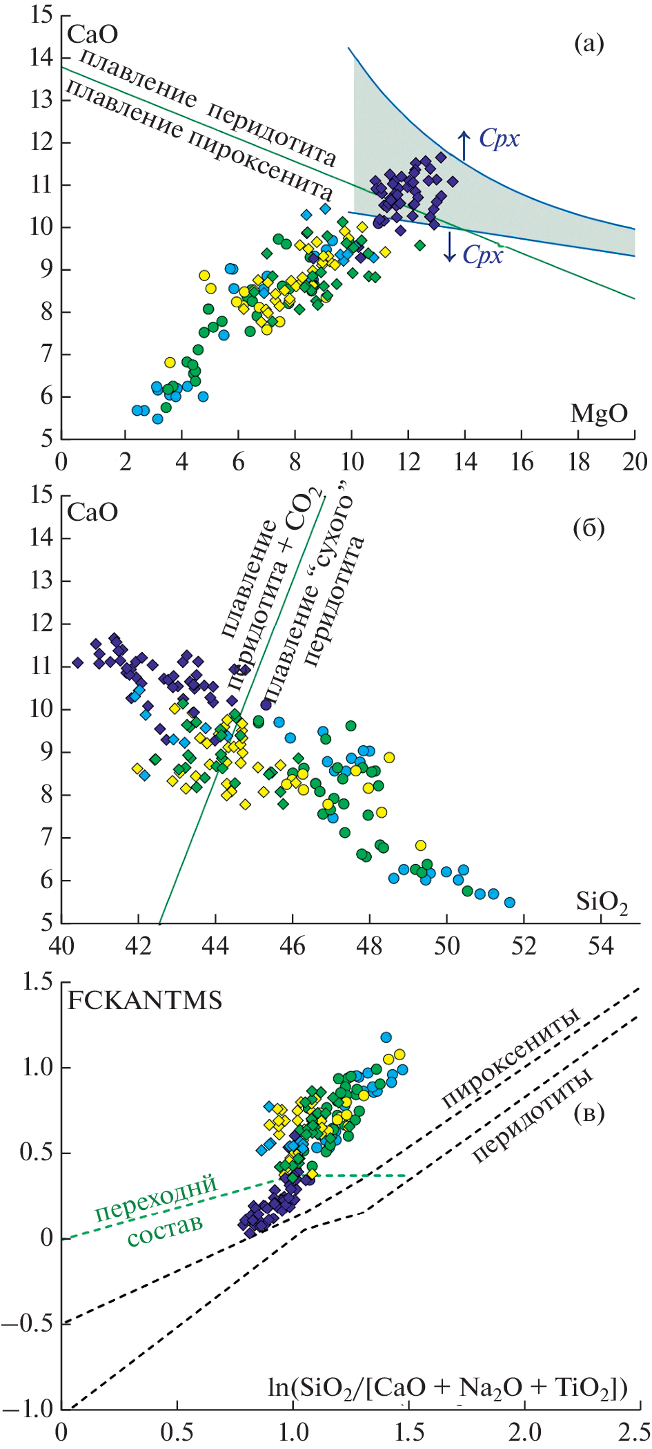 - Hirschmann M.M., Kogiso T., Baker M.B., Stolper E.M. Alkalic magmas generated by partial melting of garnet pyroxenite // Geology. 2003. V. 31. № 6. P. 481–484.