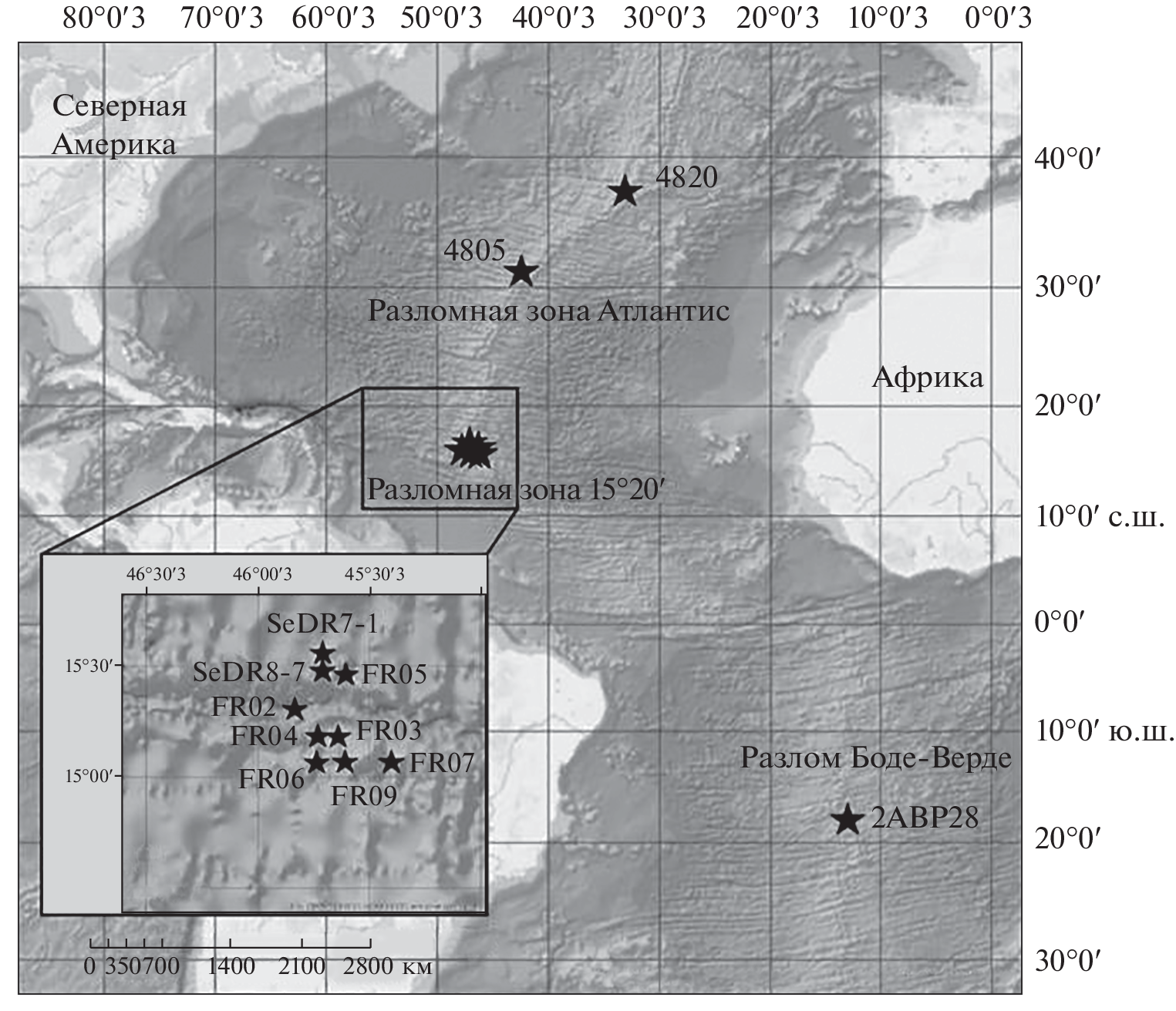 - Cannat M., Lagabrielle Y., Bougault H. et al. Ultramafic and gabbroic exposures at the Mid-Atlantic Ridge: geological mapping in the 15° N region // Tectonophysics. 1997. V. 279. P. 193–213.