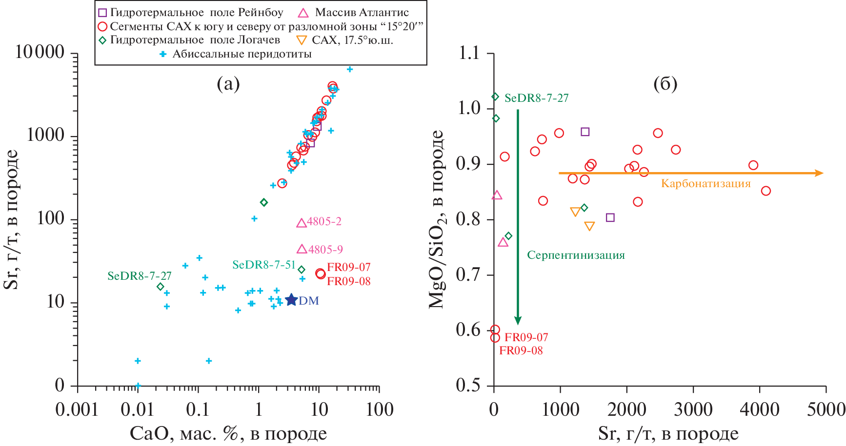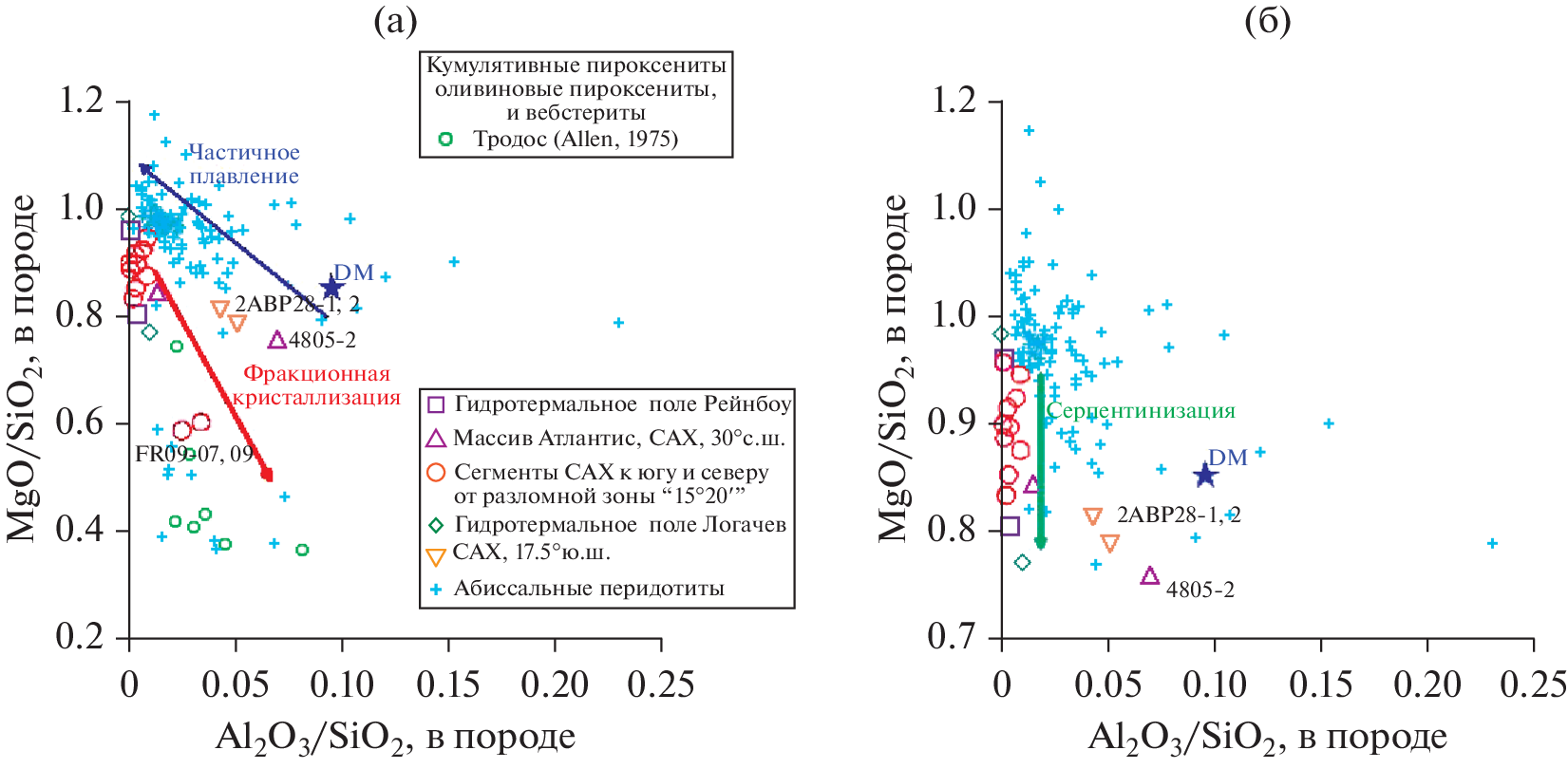 - Paulick H., Bach W., Godard M. et al. Geochemistry of abyssal peridotites (Mid-Atlantic Ridge, 15°20′ N, ODP Leg 209): implications for fluid/rock interaction in slow spreading environments // Chemical Geol. 2006. V. 234. P. 179–210.