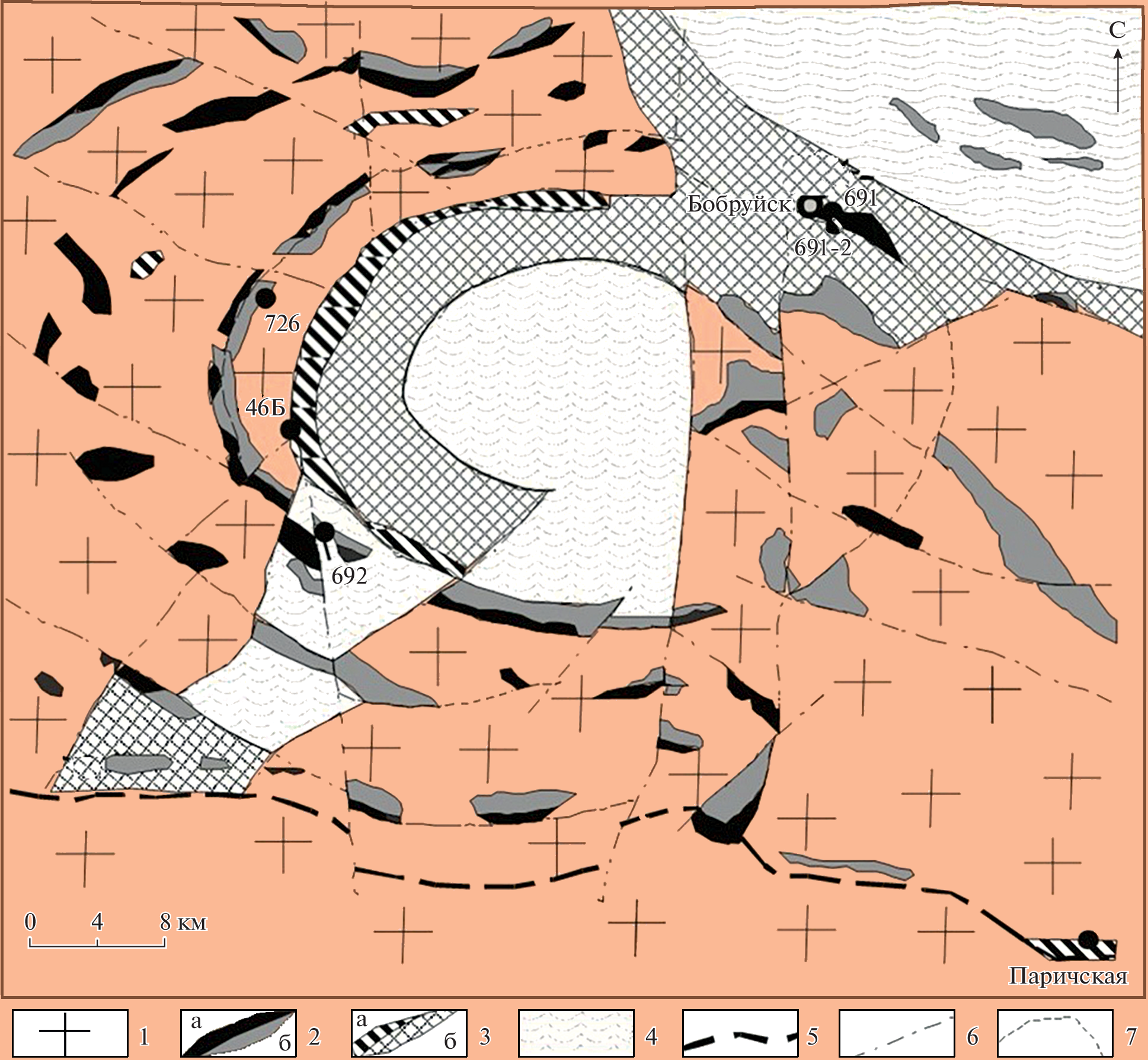 - Солодилова В.В., Завадич Н.С., Левицкий В.И. и др. Минералого-геохимические особенности габбро-долеритовой формации Бобруйской кольцевой структуры // Литосфера. 2015. Т. 43. № 2. С. 46–59.