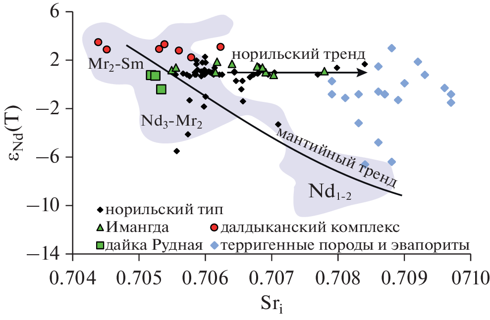 43. Lightfoot P.C. Hawkesworth C.J., Hergt J. et al. Remobilisation of the continental lithosphere by a mantle plume: major-, trace-element, and Sr-, Nd-, and Pb-isotope evidence from picritic and tholeiitic lavas of the Noril’sk District, Siberian Trap, Russia // Contrib. Mineral. Petrol. 1993. V. 114. P. 171–188.