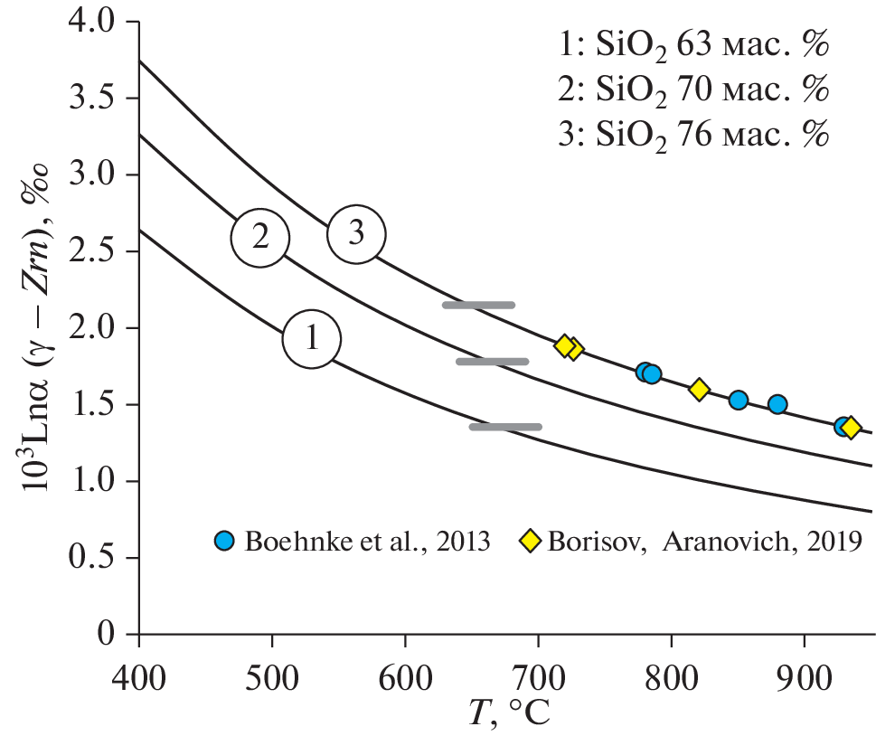 - Borisov A., Aranovich L. Zircon solubility in silicate melts: new experiments and probability of zircon crystallization in deeply evolved basic melts // Chem. Geol. 2019. V. 510. P. 103–112.