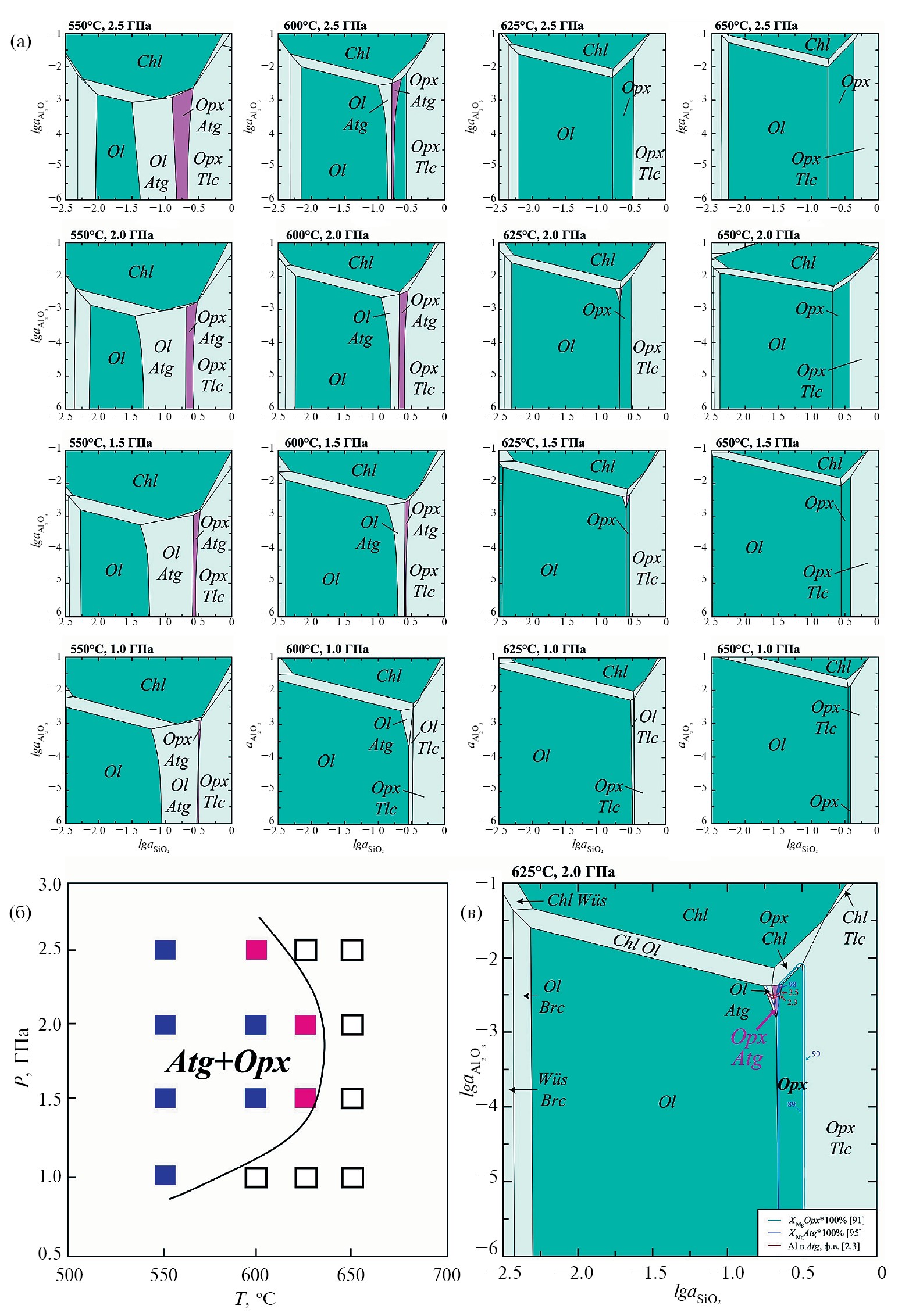 Р-Т диаграмма с полем стабильности антигорита (рис. 1а) предсказывает широкую распространенность высокобарных серпентинитов в надсубдукционной мантии независимо от ее термальной структуры. Несмотря на это, серпентиниты (метаперидотиты) в высокобарных метаморфических комплексах субдукционного генезиса не всегда содержат запись о Р-Т условиях глаукофансланцевой или эклогитовой фаций метаморфизма (например, Вализер и др., 2013б).