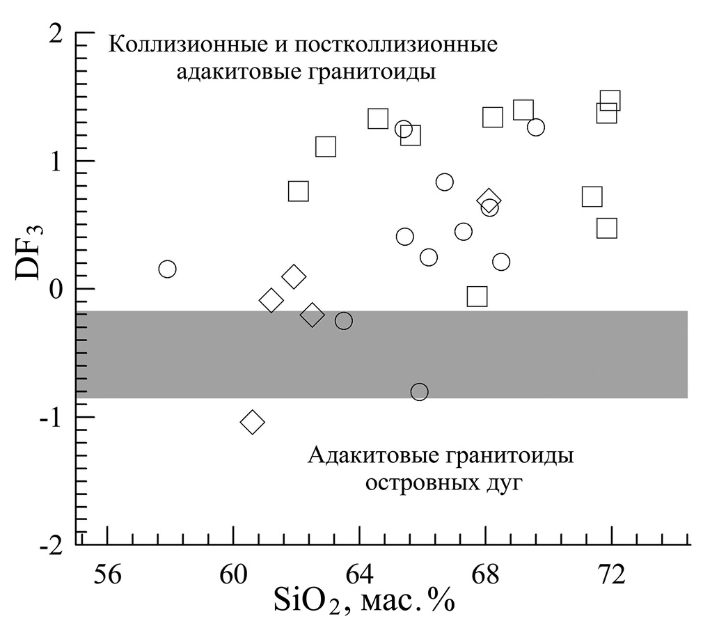 - Maniar P.D., Piccoli P.M. Tectonic discrimination of granitoids // Geol. Soc. Amer. Bull. 1989. V. 101. P. 635–643.