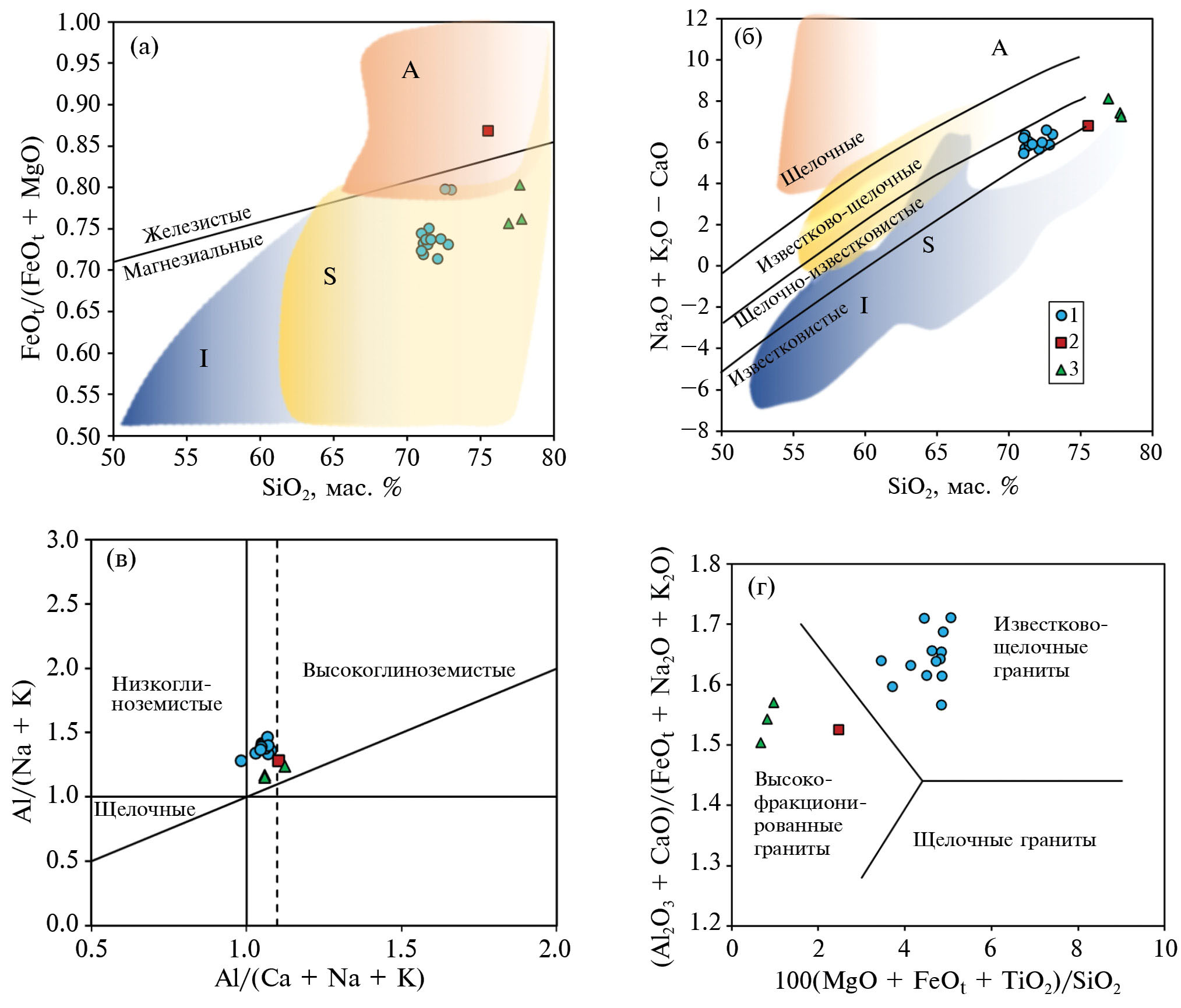 - Pearce J.A. Sources and settings of granitic rocks // Episodes. 1996. V. 19. Р. 120–125.