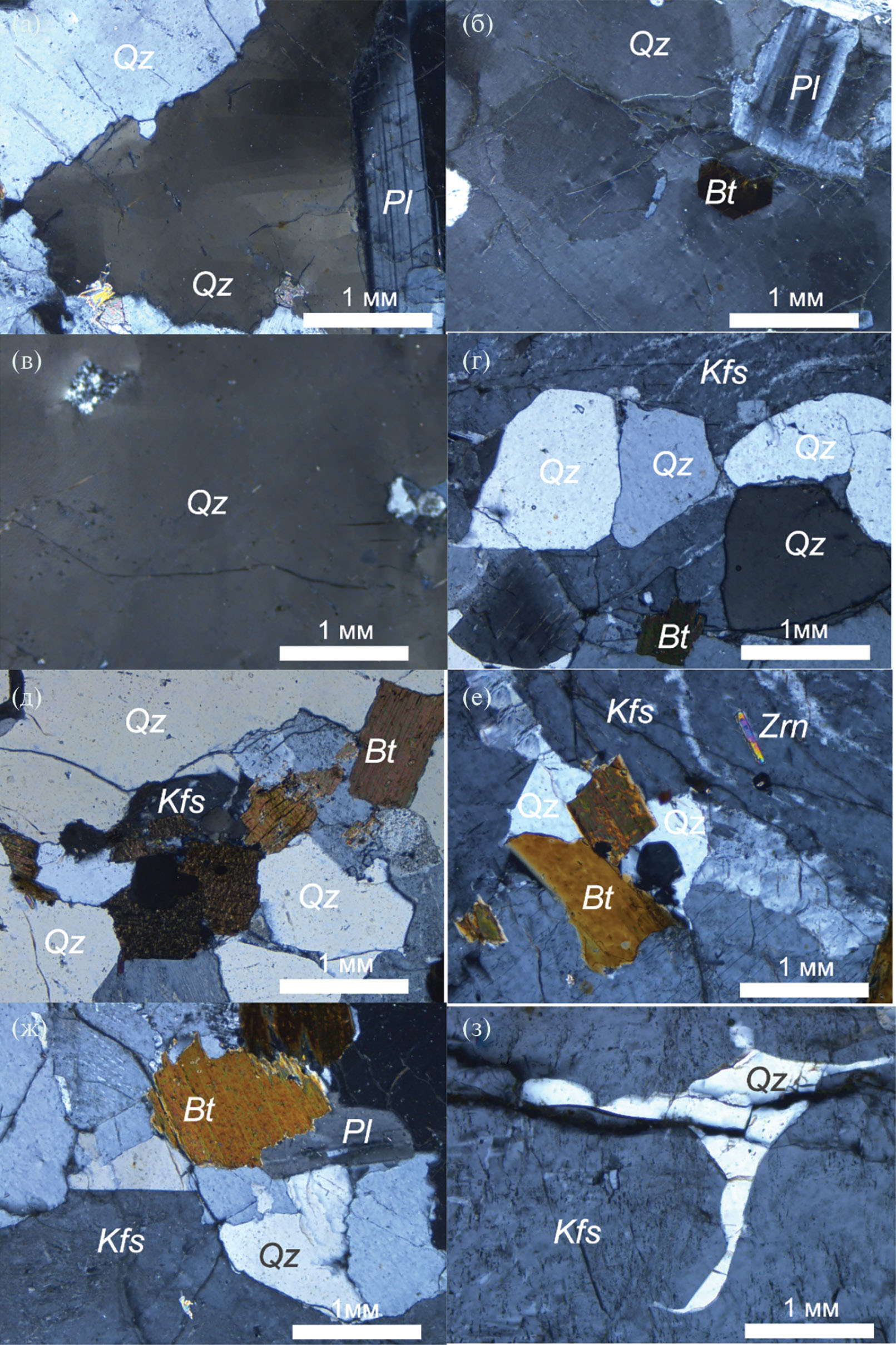 В настоящей работе нами применен подход, связанный с изучением величины δ18О для отдельных (единичных) зерен кварца, для которых могут быть точно установлены размер и их форма, а сами зерна могут быть извлечены из единого фрагмента или домена породы. Как следует из уравнения (1), если остывание породы не было осложнено какими-либо термальными событиями (прогревом и/или перекристаллизацией за счет последующих магматических, метаморфических, тектонических и др. процессов), значения Тс для зерен разного размера в одном домене породы должны быть разными, а скорости остывания – близкими друг к другу, в идеале – идентичными. Протестировать данный подход именно на гранитах Эльджуртинского массива является интересной задачей, поскольку эти породы удовлетворяют всем необходимым условиям: они имеют неравномерно-зернистую порфировидную структуру и в силу молодого возраста не испытали заметных термальных изменений после формирования.