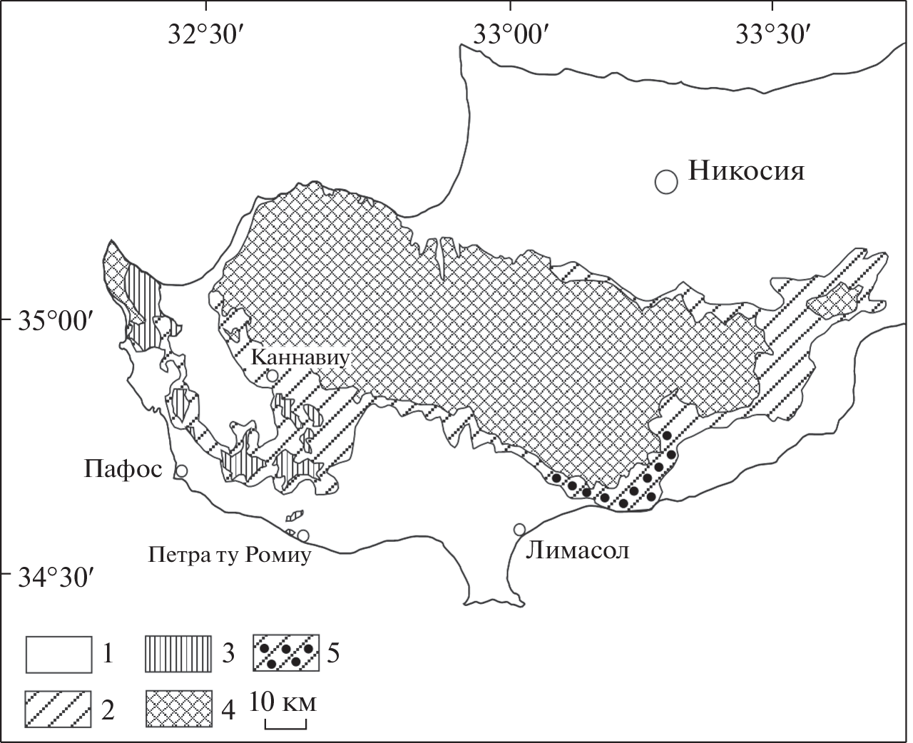 - Malpas J., Xenophontos C., Williams D. The Ayia Varvara Formation of SW Cyprus: a product of complex collisional tectonics // Tectonophysics. 1992. V. 212. P. 193–211.