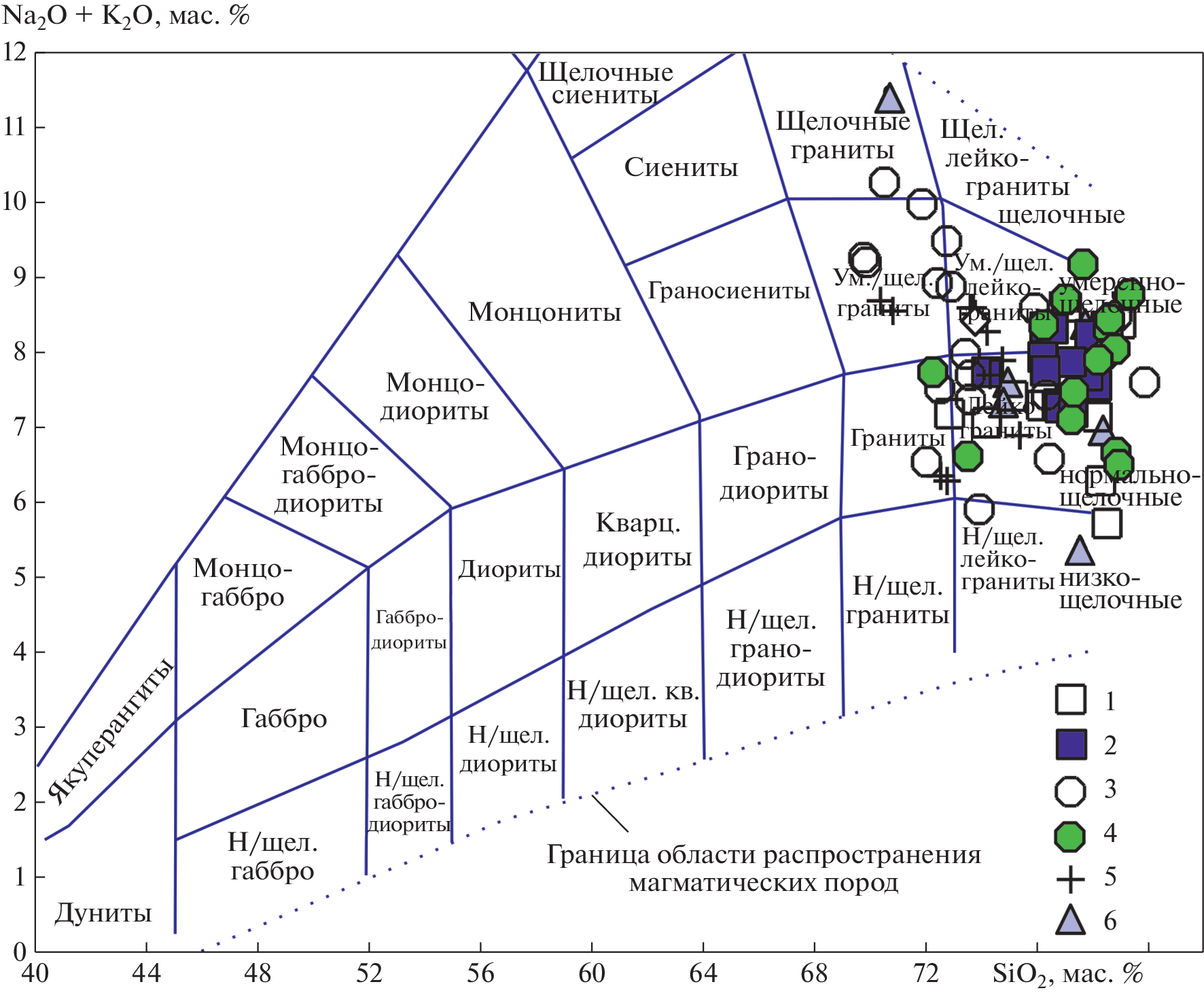 - Шарпенок Л.В., Костин А.Е., Кухаренко Е.А. TAS-диаграмма сумма щелочей–кремнезем для химической классификации и диагностики плутонических пород // Региональная геология и металлогения. 2013. № 56. С. 40–50.