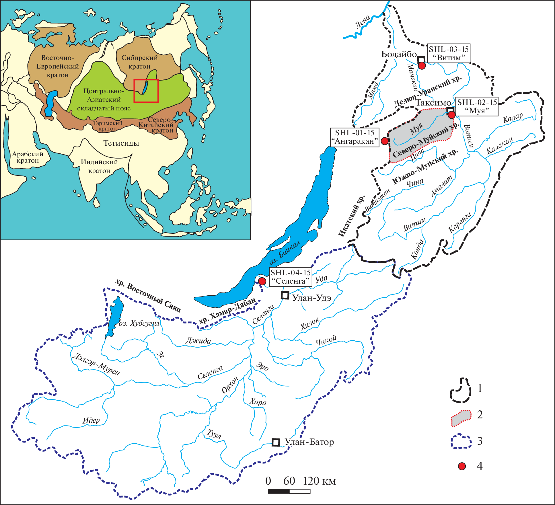 - Parfenov L.M., Bulgatov A.N., Gordienko I.V. Terranes and accretionary history of the Transbaikal orogenic belts // Int. Geol. Rev. 1995. V. 37. № 8. P. 736–751.