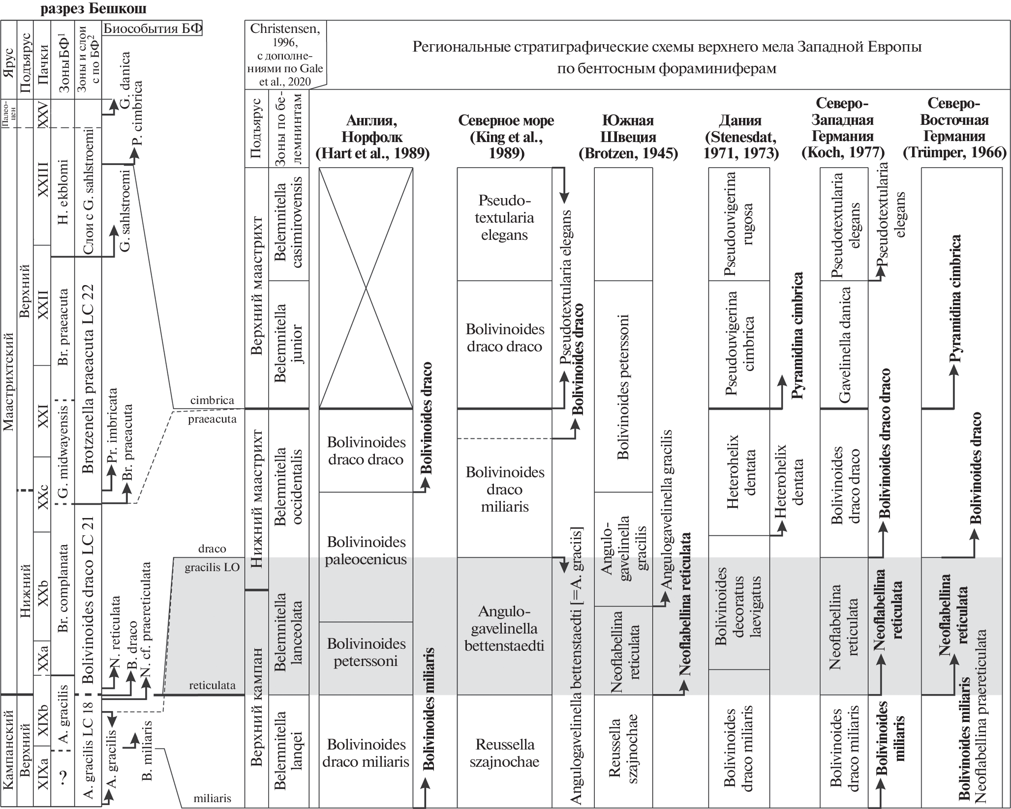 - Christensen W.K. A review of the Upper Campanian and Maastrichtian belemnite biostratigraphy of Europe // Cretaceous Res. 1996. V. 17. № 4. P. 751–766.