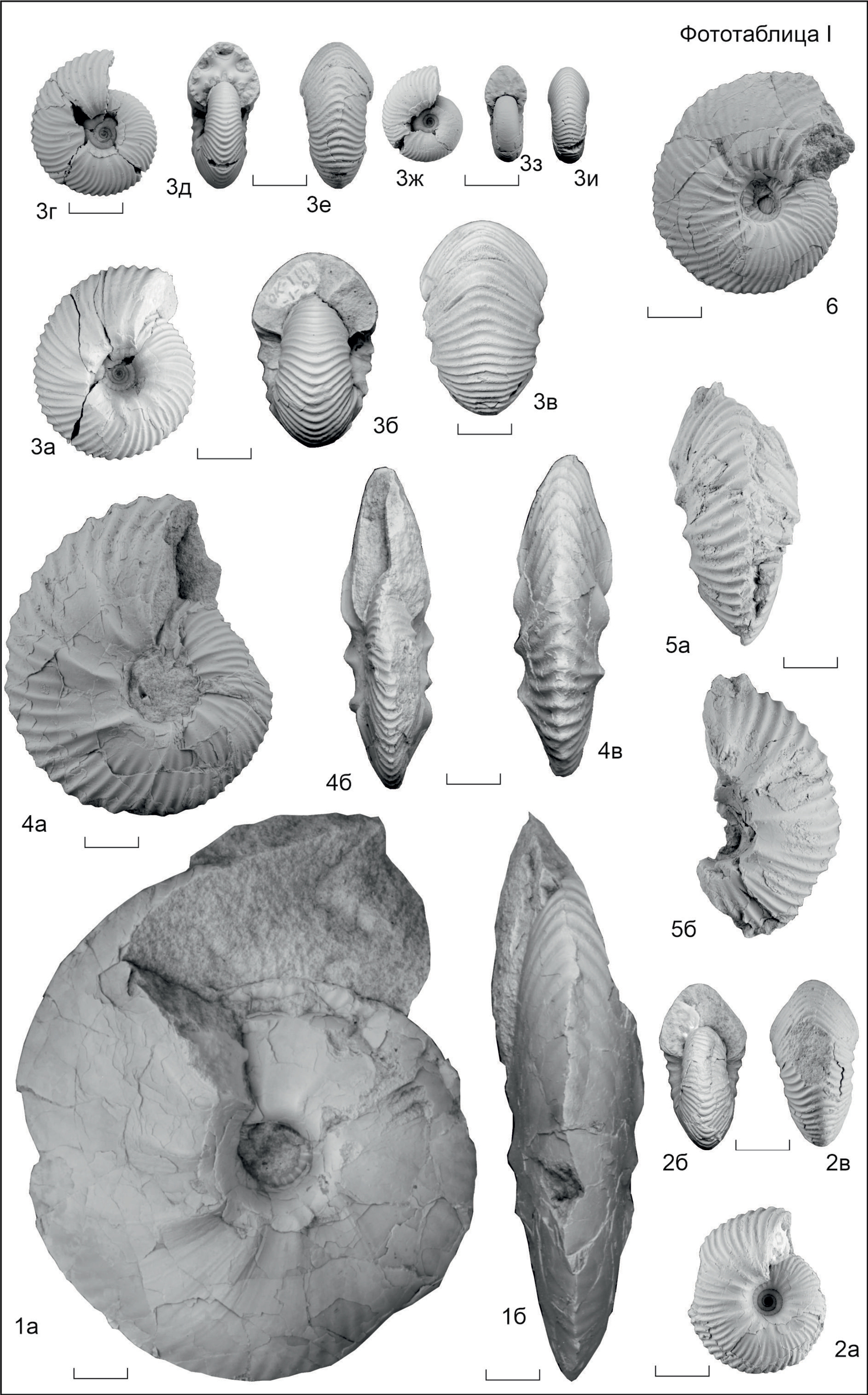 Таблица I. Здесь и в табл. II все изображенные экземпляры собраны авторами, кроме специально указанных. Коллекция хранится в Центре геологических коллекций “ГЕОХРОН” ИНГГ СО РАН под номером 2060. Все экземпляры изображены в натуральную величину. Длина масштабной линейки 1 см.