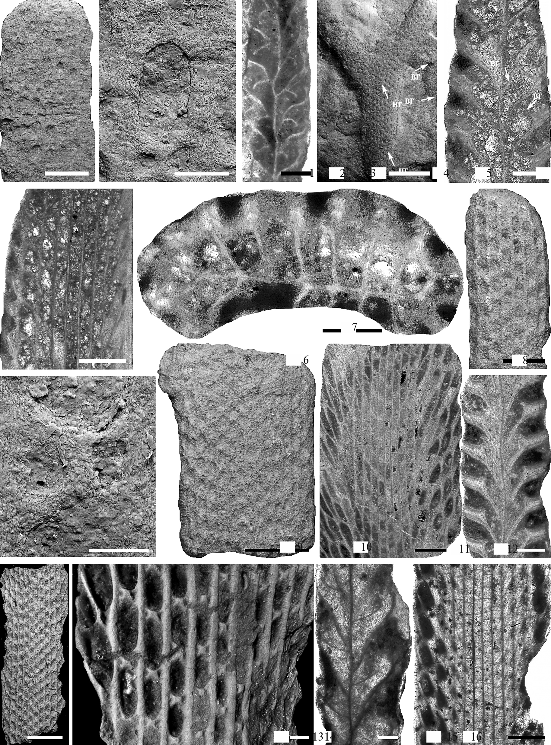 1–9 – Phaenopora plebeia Nekhoroshev: 1–3 – экз. ПИН, № 5846/15, 4–7 – экз. ПИН, № 5846/16, 8, 9 – экз. ПИН, № 5846/17; 10–12 – P. pennata Nekhoroshev, экз. ПИН, № 5846/18; 13–16 – P. erecta Nekhoroshev, экз. ПИН, № 5846/19. Обозначения: вг – верхняя гемисепта, нг – нижняя гемисепта. Длина масштабной линейки 2 мм для фиг. 4; 1 мм для фиг. 10, 13; 500 мкм для фиг. 1, 6, 8, 11, 16; 250 мкм для фиг. 3, 5, 7, 12; 100 мкм для фиг. 2, 14, 15; 50 мкм для фиг. 9.