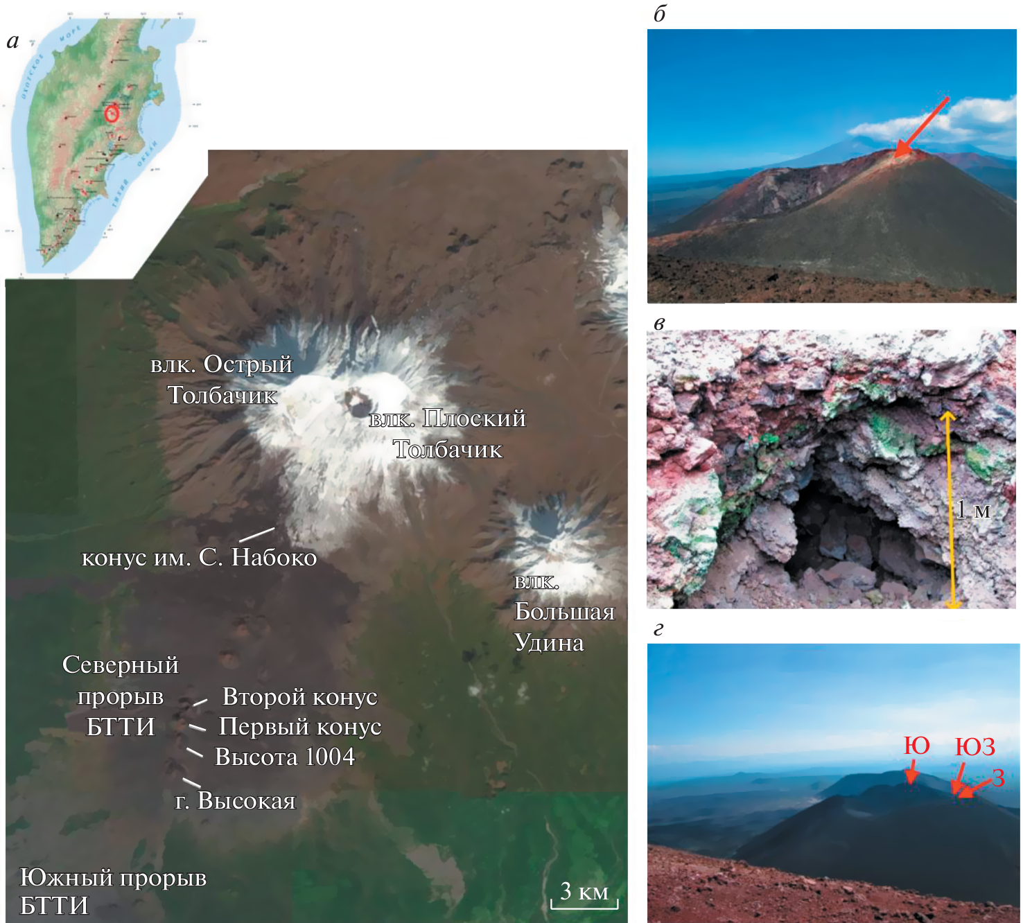 - Набоко С.И., Главатских С.Ф. Реликты постэруптивной деятельности на старых конусах Толбачинского дола, Камчатка // Вулканология и сейсмология. 1992. № 5–6. С. 66–86.