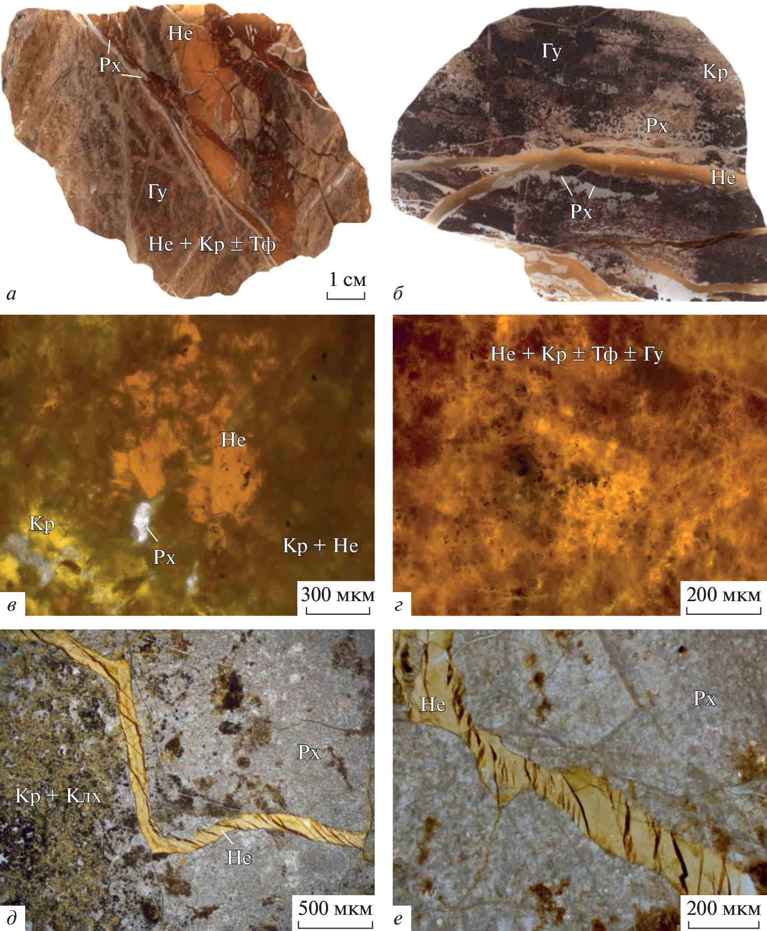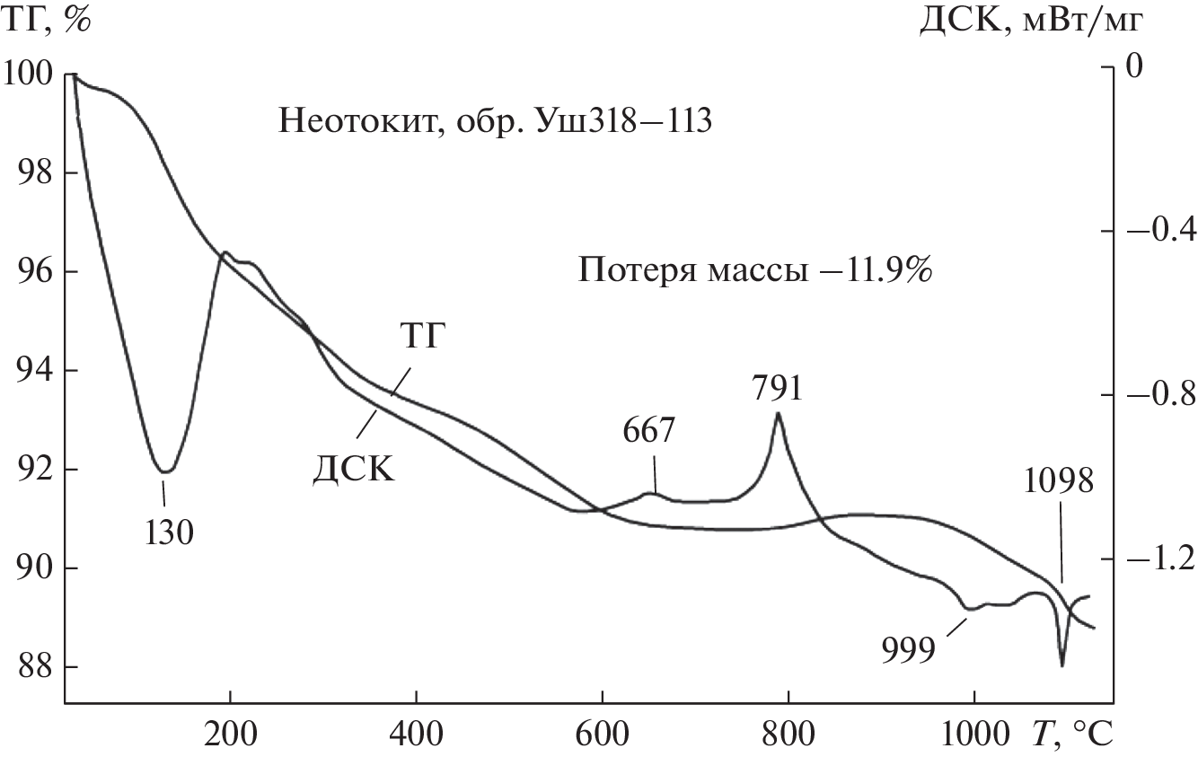 Neotocite, an X-ray amorphous hydrous manganese silicate is the mineral characteristic for low-grade metamorphosed sedimentary manganese ores of Ushkatyn-III deposit in Central Kazakhstan. It occurs both in the groundmass of ores, with hausmannite, tephroite, caryopilite, friedelite, pennantite, rhodochrosite, kutnogorite, and in veinlets crossing these ores. In veinlets, segregations of homogeneous neotocite reach several cubic centimeters. The study of such large segregations allows to characterize optical, mechanical and thermal properties, IR spectra, and chemical composition of neotocite using modern analytical methods. It is assumed that manganese in neotocite is mainly (or even completely) divalent. The stoichiometry of the mineral, taking into account chemical, thermal analyzes and IR spectroscopy data, corresponds to the ideal formula Mn7(Si8O20)(OH)6∙nH2O. This formula reflects correctly the ratio of silicon and manganese in the mineral, its layered crystal structure and at least two different forms of H-bearing: in (OH)-groups and H2O molecules. The above given formula of neotocite could be accepted as the idealized one. Neotocite was formed at low temperatures and in reducing conditions during the sedimentary burial of metal-bearing deposits containing a Mn–Si–H2O substance (gel?), or later – due to hydrothermal alteration of already formed manganese ores.