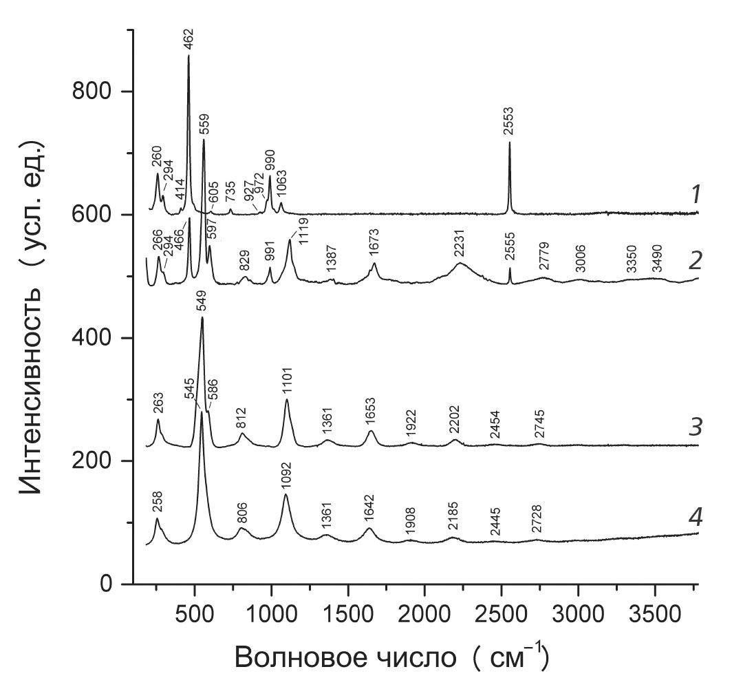 - Jacquemet N., Guillaume D., Zwick A., Pokrovski G.S. In situ Raman spectroscopy identification of the S3— ion in S-rich hydrothermal fluids from synthetic fluid inclusions. Amer. Miner. 2014. Vol. 99. P. 1109–1118.