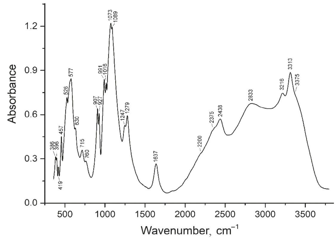 6. Fig. 5. The infrared spectrum of the synthetic analogue of lednevite.