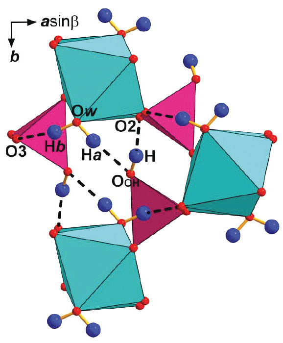 Fig. 9. H-bonding system in the crystal structure of the synthetic analogue of lednevite.