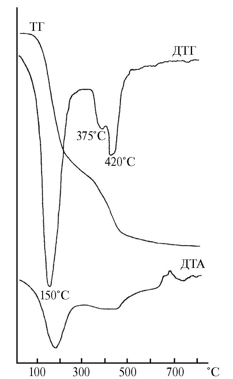 Термический анализ минерала осуществлен на дериватографе Q — 1500D (Венгрия) в интервале температур от комнатной до 800 оС со скоростью нагревания 20 о/мин, масса образца составляла 192.0 мг.