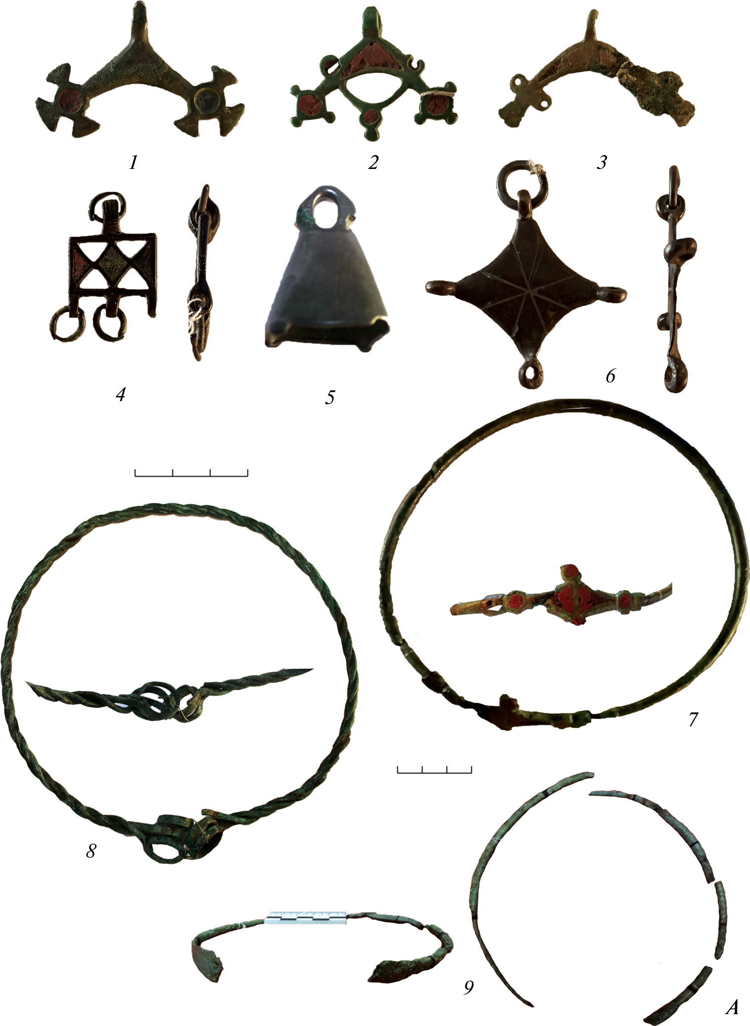 - Voronyatov S.V., Khomyakova O.A., 2018. Twisted-wire neck-rings with open hook-shaped terminals. Bryanskiy klad ukrasheniy s vyemchatoy emal’yu vostochnoevropeyskogo stilya (III v. n.e.) [Bryansk hoard of ornaments with champlevé enamel of the East European style (3rd century AD)]. A.M. Oblomskiy, ed. Moscow: IA RAN; Vologda: Drevnosti Severa, pp. 82–85. (Ranneslavyanskiy mir, 18). (In Russ.)