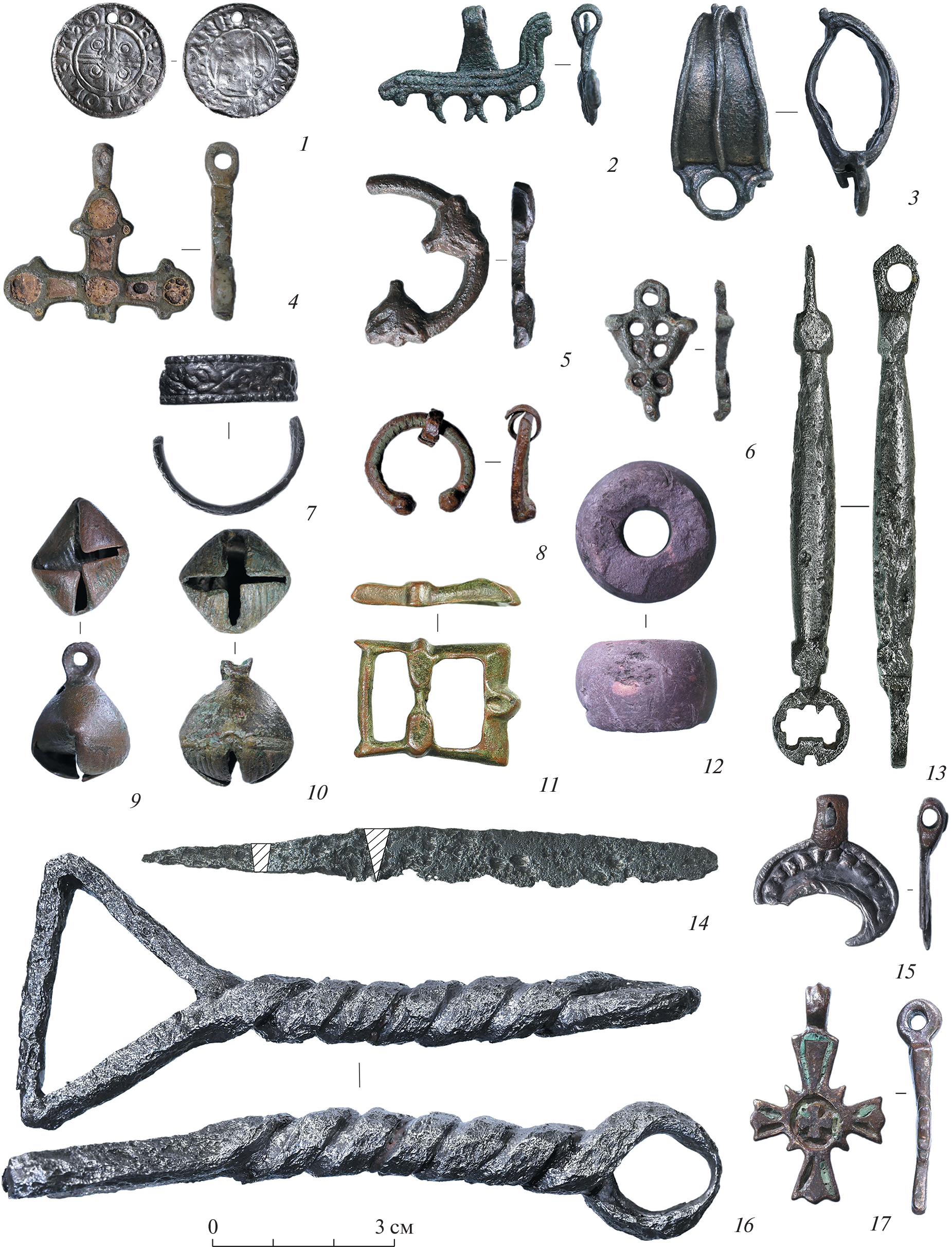 В статье представлены результаты синхротронной и нейтронной визуализации уникальной находки – железного основания навершия меча, обнаруженного в ходе работ Суздальской археологической экспедиции Института археологии РАН на селище Крапивье 10 в округе Суздаля. Исследования проведены в НИЦ “Курчатовский институт”. Их задачей было восстановление рисунка частично сохранившегося декора на сильно корродированном предмете с помощью неразрушающих методов. В результате работ был выявлен инкрустированный декор из серебряной и медносплавной проволок, позволивший определить тип навершия (тип V, согласно типологии Я. Петерсена) и его датировку (середина – вторая половина X в.). Находка является одной из самых ранних на селище Крапивье 10, небольшом поселении в глубине овражных систем, возникающем в середине – второй половине XI в.