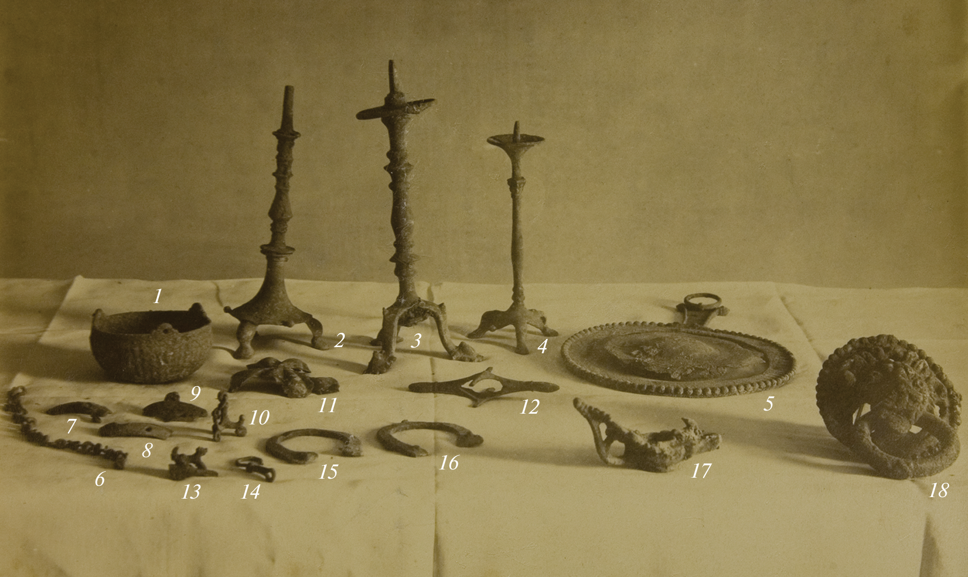METAL OBJECTS FROM EXCAVATIONS AT THE JOASAPH SITE (JERICHO) IN A PHOTOGRAPH OF THE 1880–1890s
