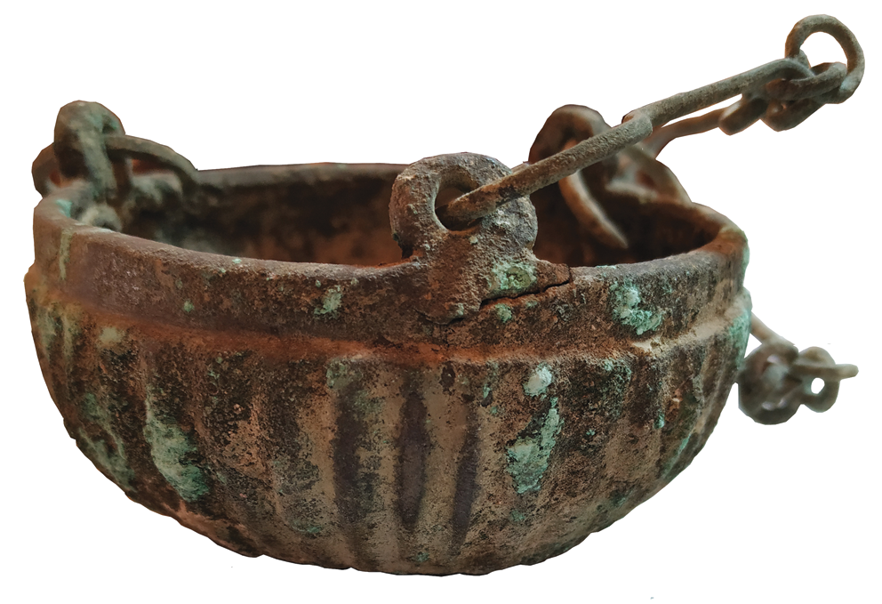 At the end of the 19th century, one of the Russian photographers took pictures of items collected on the site which Father Joasaph bought in 1883. Later, the area was transferred to the Imperial Orthodox Palestine Society. Now it houses the Museum and Park Complex that belongs to the Russian Federation. An analysis of ceramic objects in one of the photographs was published earlier. This article discusses the second picture, which contains objects made of bronze and iron. Their analysis made it possible to identify the liturgical function of a significant part of the objects: an incense burner on chains, high stands – candelabra for oil lamps (3 items) and one such lamp; a fragment of a libation vessel shaped as a dog. One item shown in the photo remained unattributed despite numerous consultations. In general, the composition of the finds supports the authors’ assessment of the site as belonging to a Christian community, possibly a monastery or a pilgrimage home.