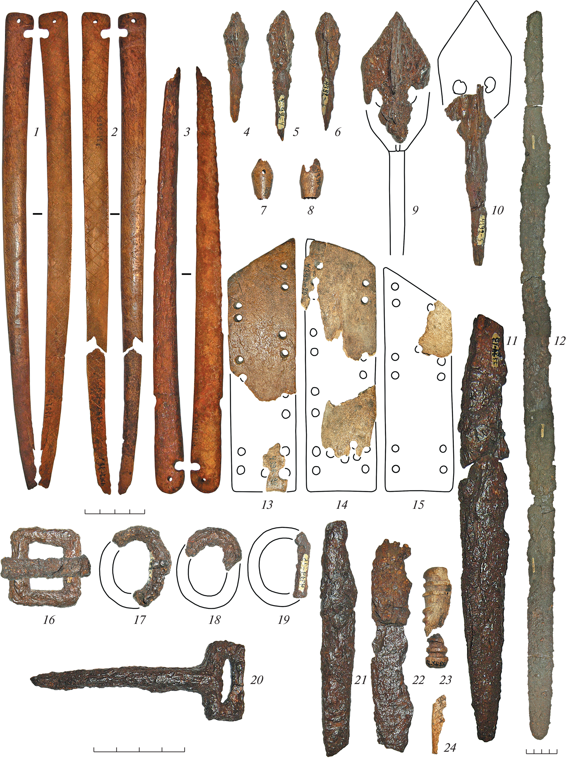 - Matveeva N.P., Potemkina T.M., Solov’ev A.I., 2004. Some issues of reconstructing defensive weapons of the Sargatka culture bearers (based on the materials of the Yazevo-3 burial ground). Arkheologiya, etnografiya i antropologiya Evrazii [Archaeology, ethnology and anthropology of Eurasia], 4(20), pp. 85–99. (In Russ.)