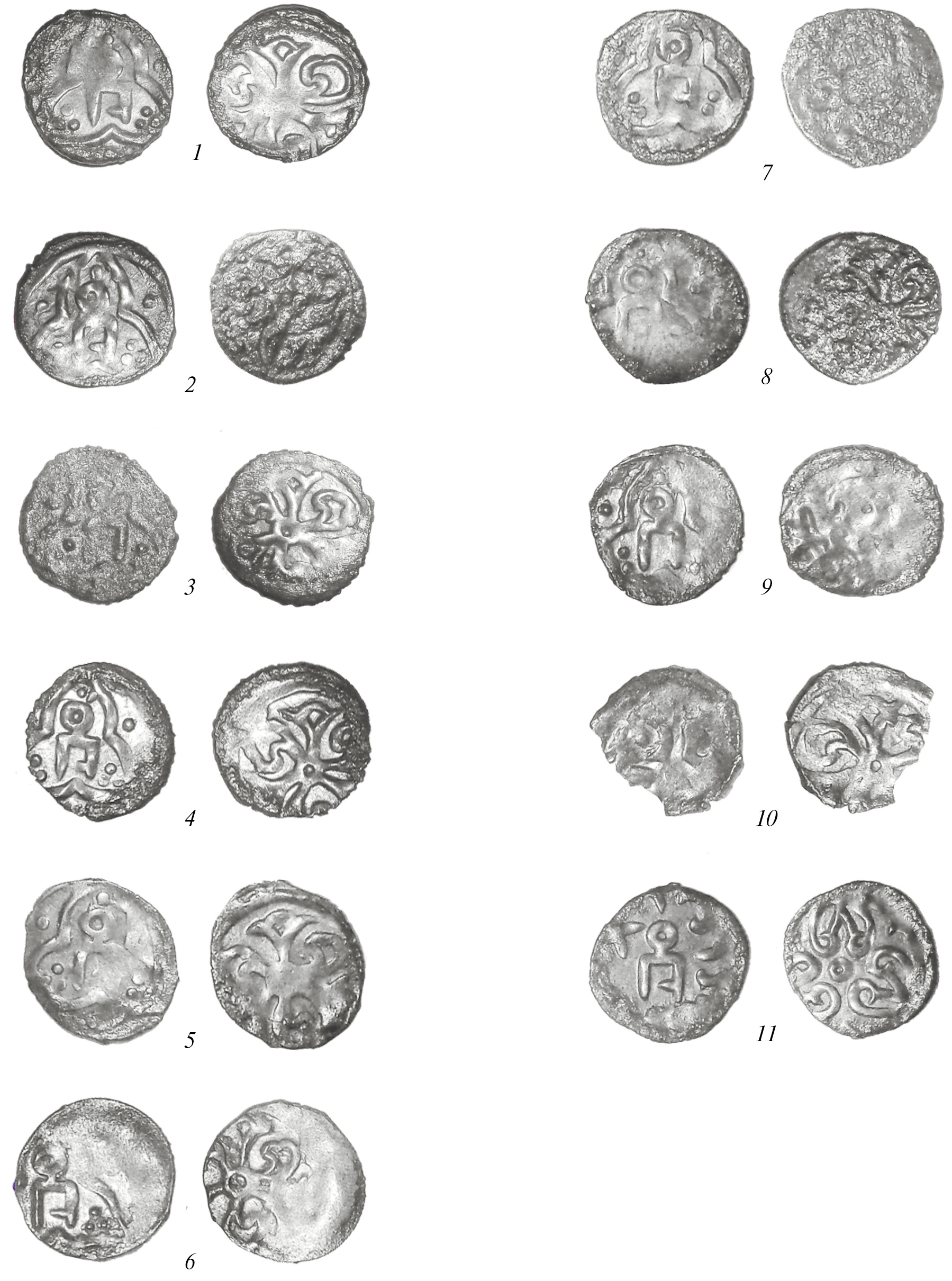 2. Рис. 1. Монеты клада из раскопа CXCII. 1–10 – дирхамы типа С/180. 11 – дирхам типа С/197.