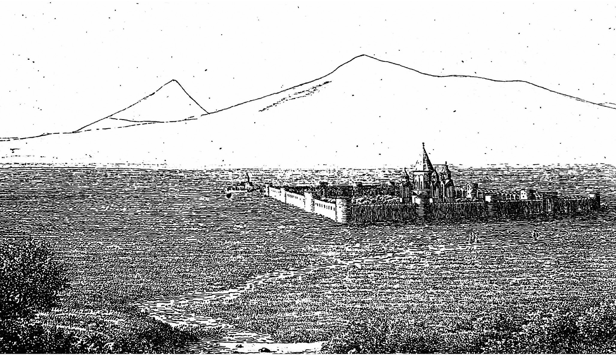 Fig. 2. A panoramic view of Vagharshapat. Engraving by Parrot, 1834 (Ter Minassian, 1998. P. 9)