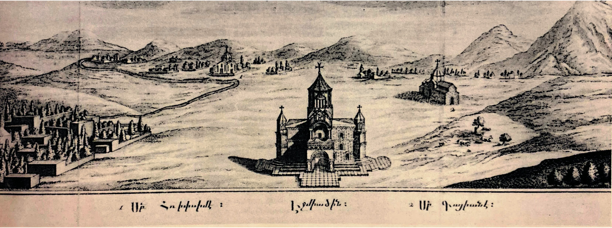 Fig. 1. A panoramic view of Vagharshapat. Engraving by Turnefort, 1717 (Ter Minassian, 1998. P. 7)