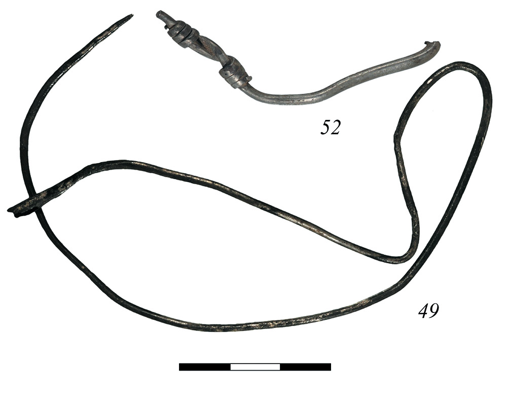 Шесть предметов из муромских селищ Чаадаево 5 и Катышево 1 относятся к концу XI – первой половине XIII в. Так же как и в Ополье, серебряные украшения здесь единичны. Находки второй половины X – первой половины XI в. на муромских памятниках отсутствуют, что позволяет проследить динамику поступления серебряных предметов на территорию Северо-Восточной Руси в разные хронологические периоды.