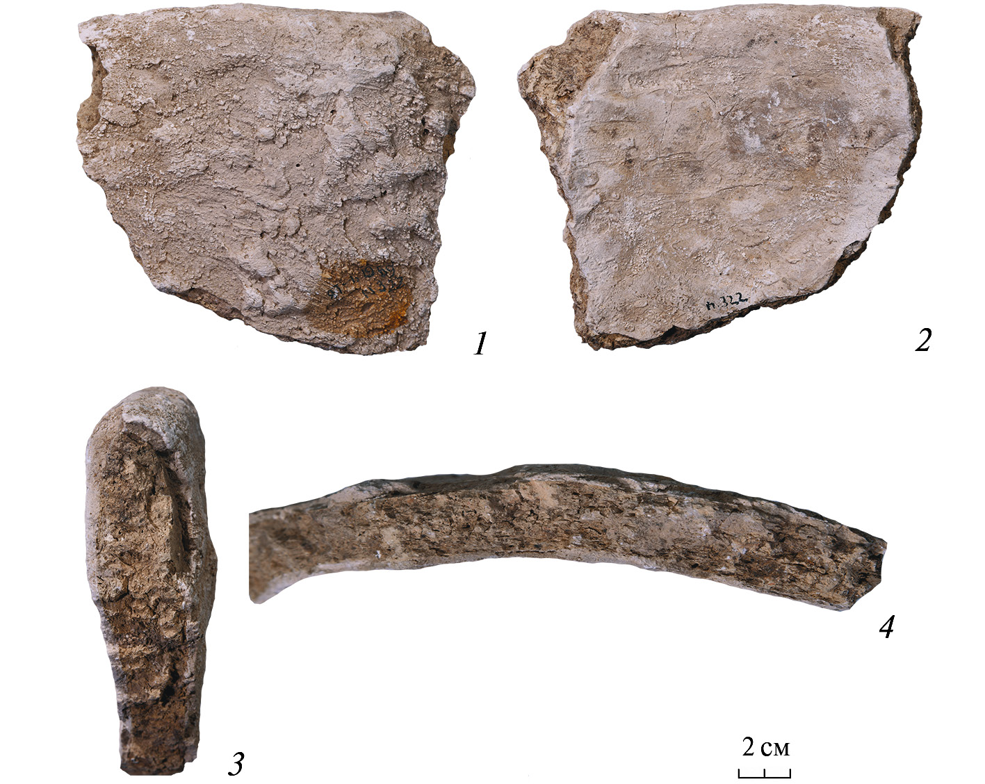 2 Фрагменты керамических сосудов, обмазанных гипсом, имеют отдельную нумерацию.